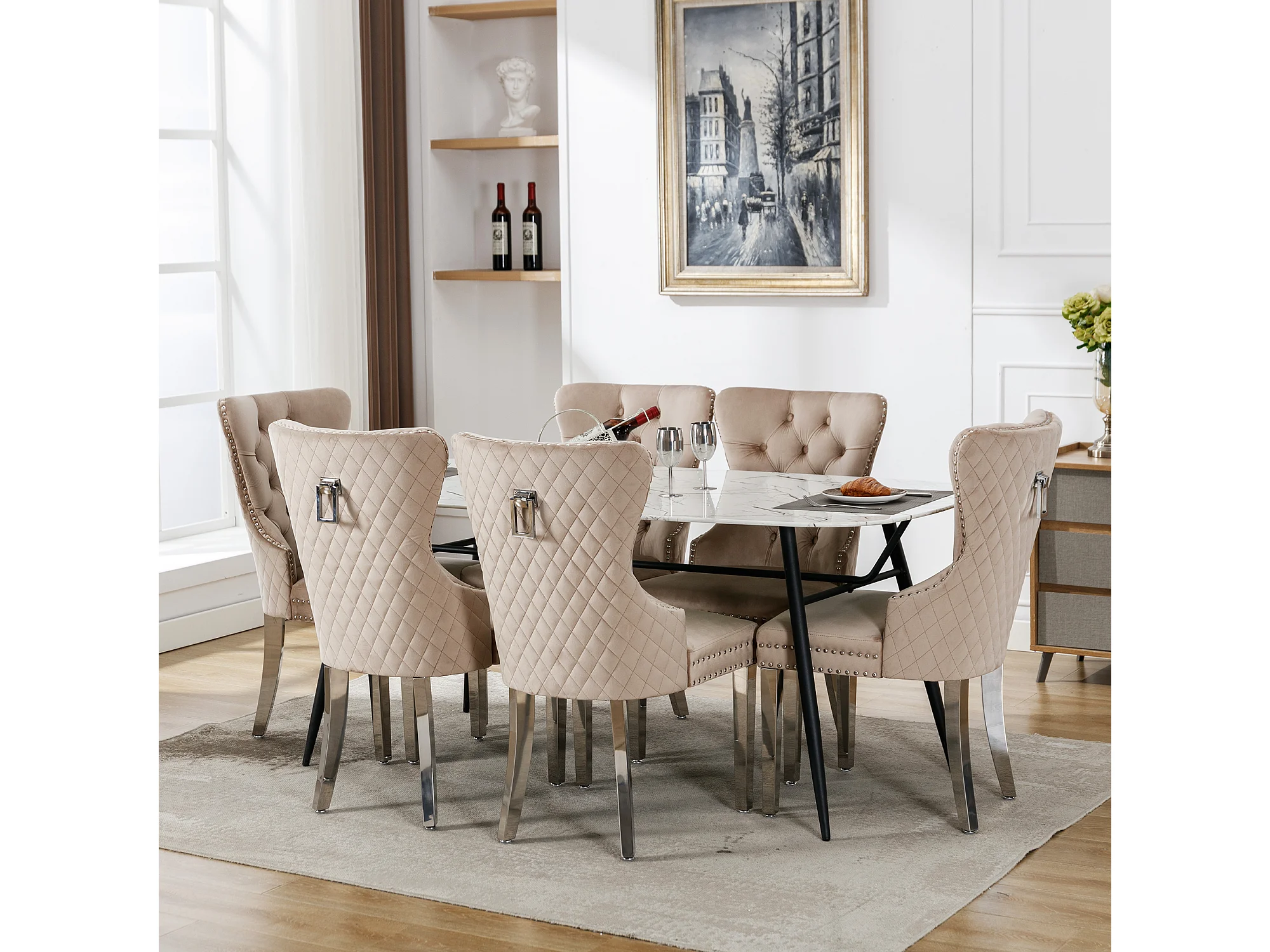 Lot de 6 chaises avec rivets, pieds en métal - Velours beige