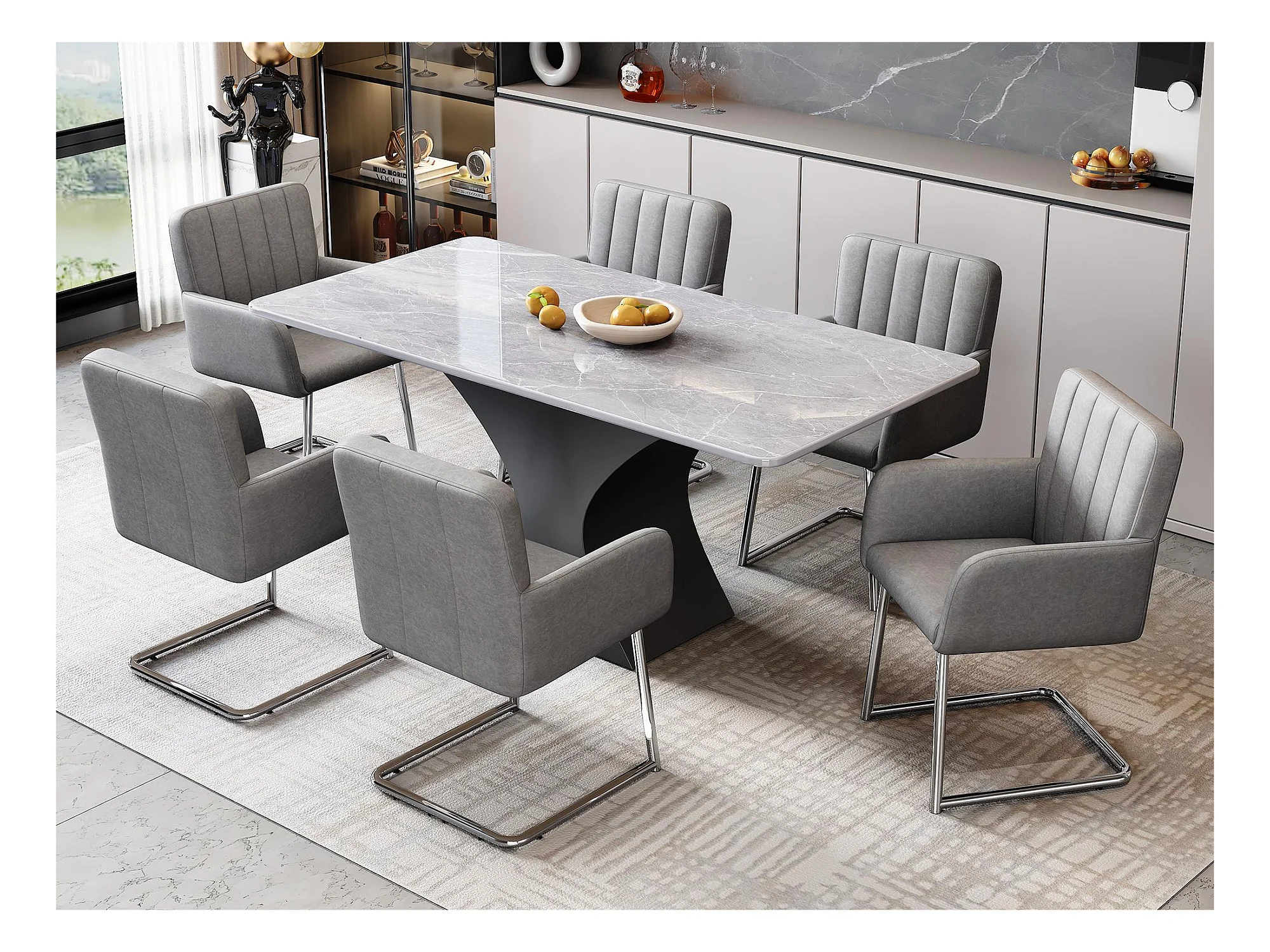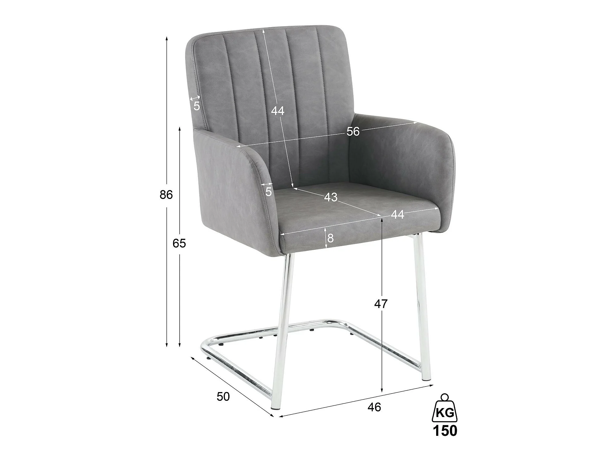 Lot de 6 Chaises cantilever rembourrées en similicuir - Gris