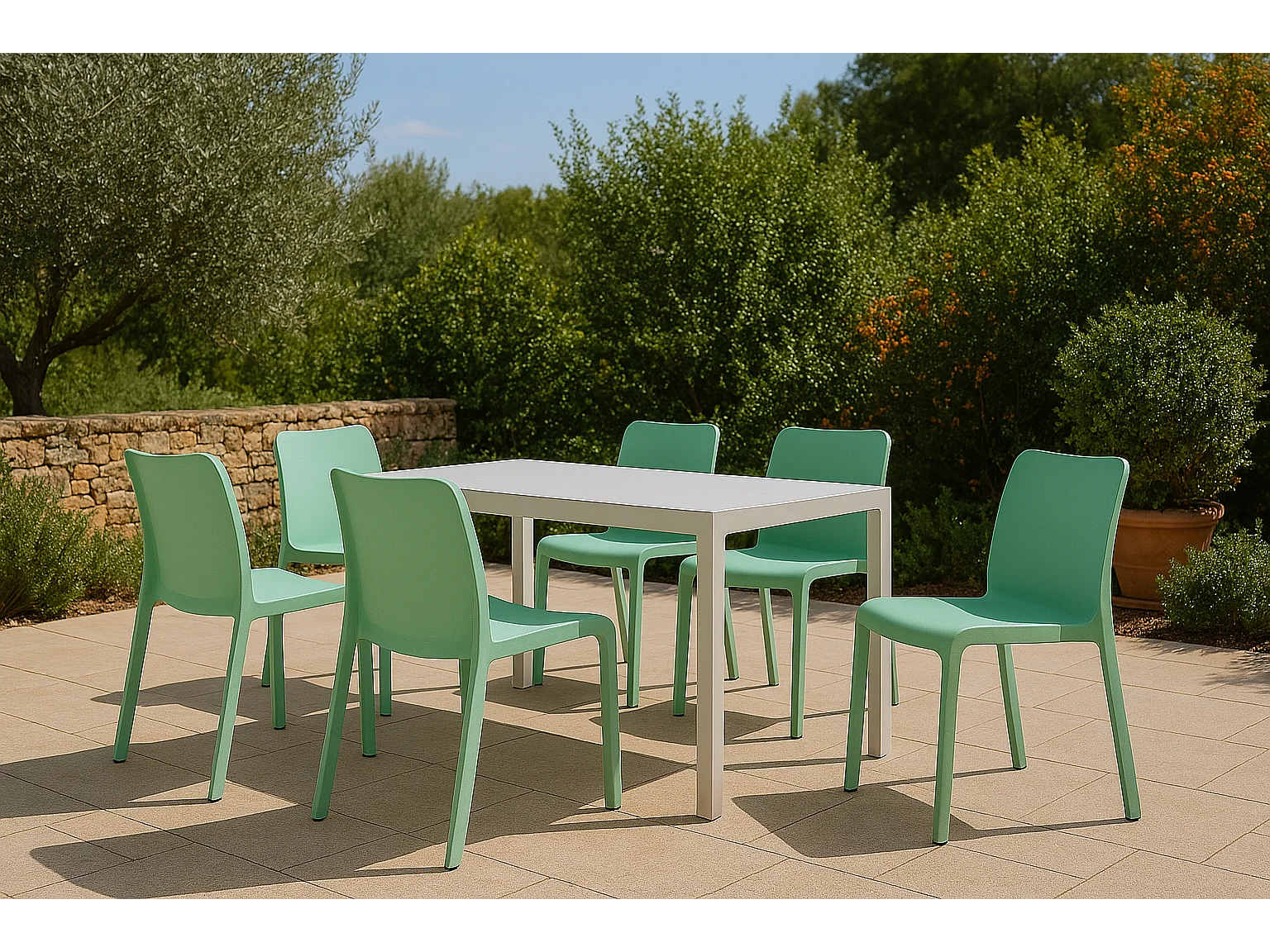 Lot de 6 chaises de jardin empilables en résine coloris vert - Longueur 48 x Profondeur 53 x Hauteur 80 cm
