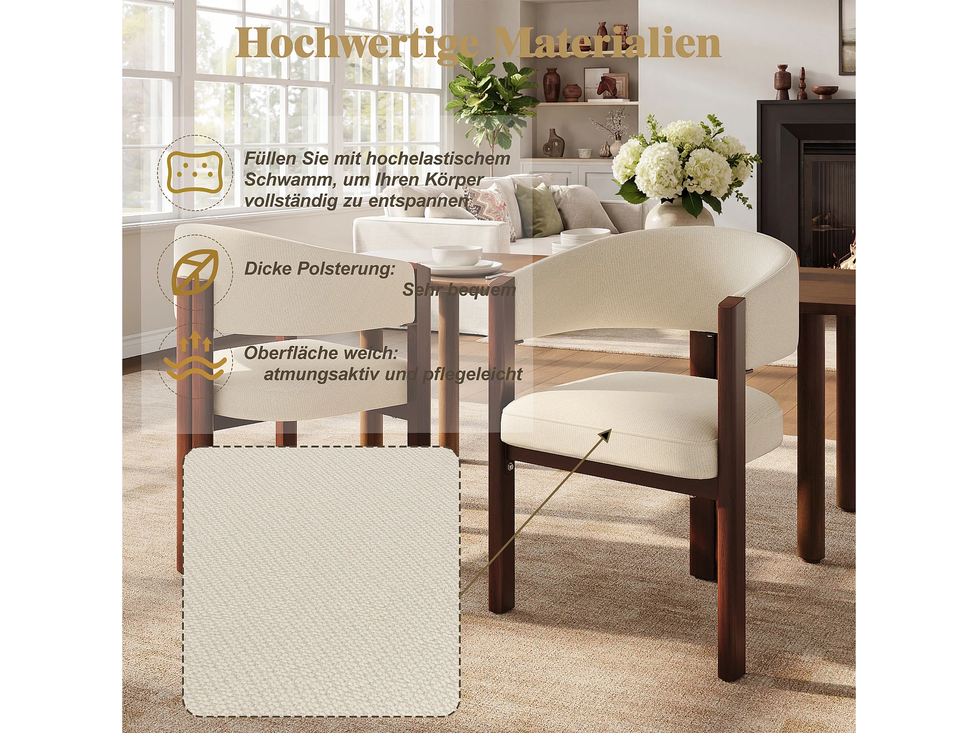 Lot de 6 Chaises de salle à manger - 53 x 47.5 x 85.5 cm - avec rembourrage + pieds réglables en fer - Flanelle - beige + marron