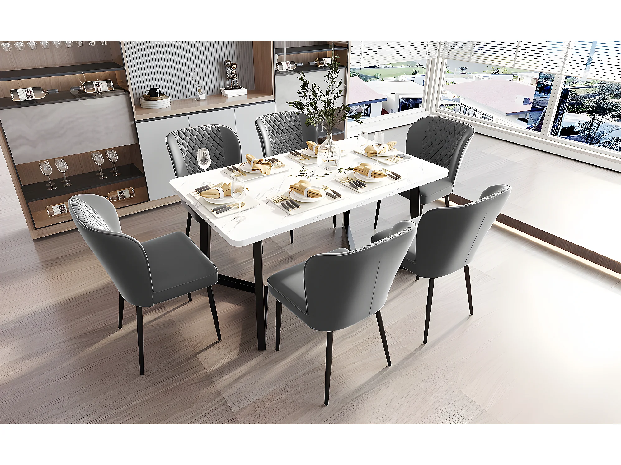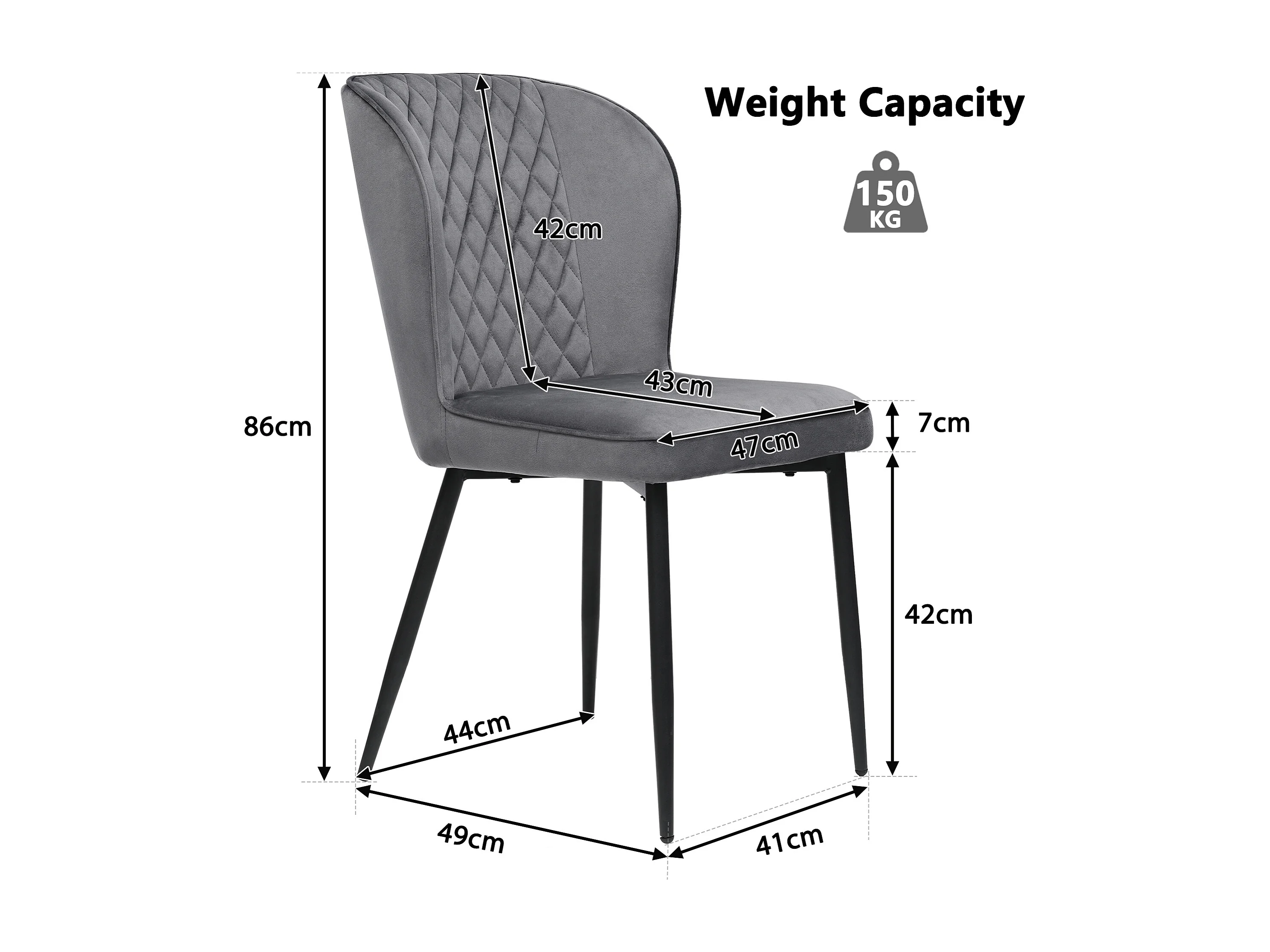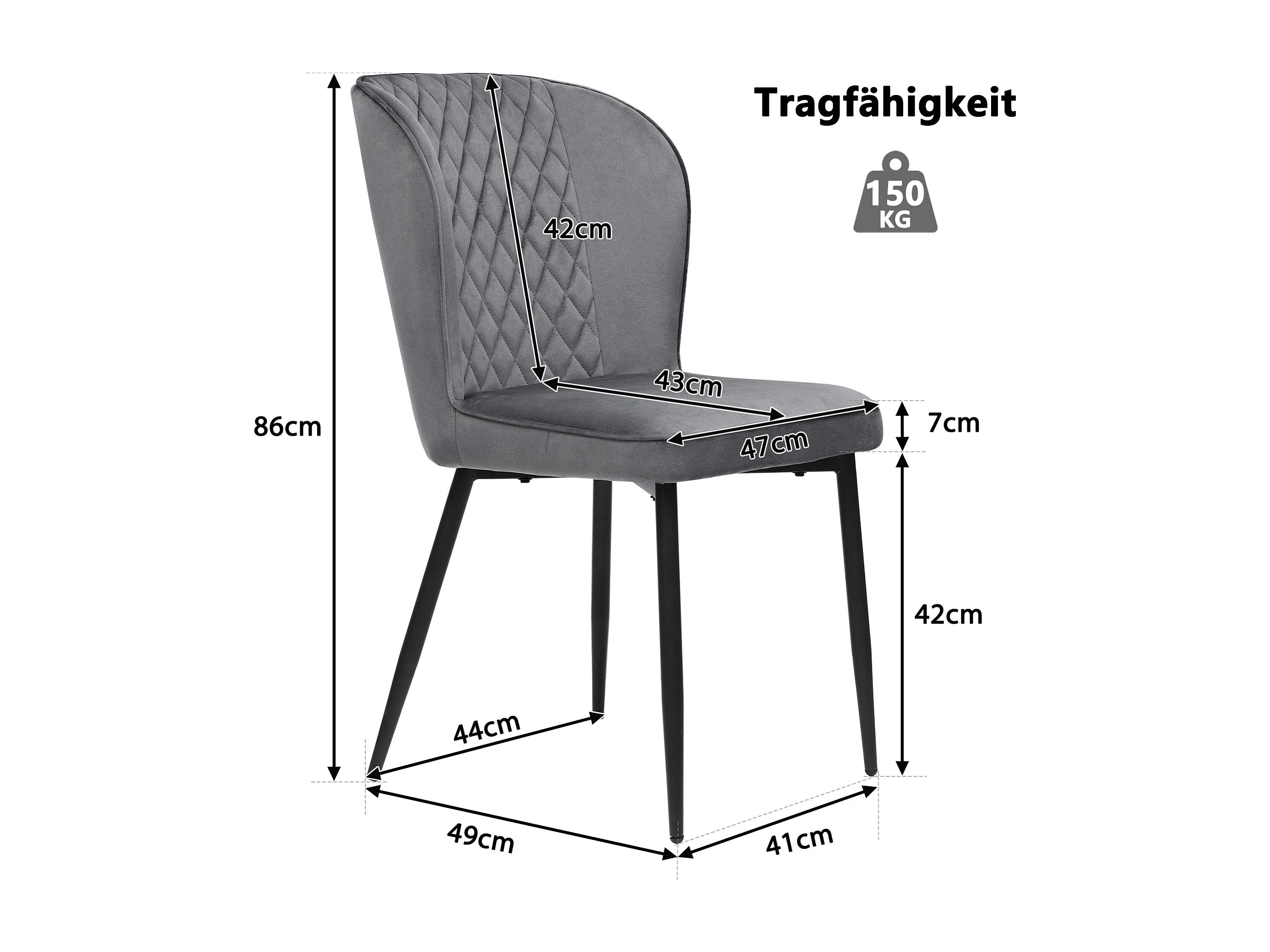 Lot de 6 chaises de salle à manger en velours - pièds en métal - gris