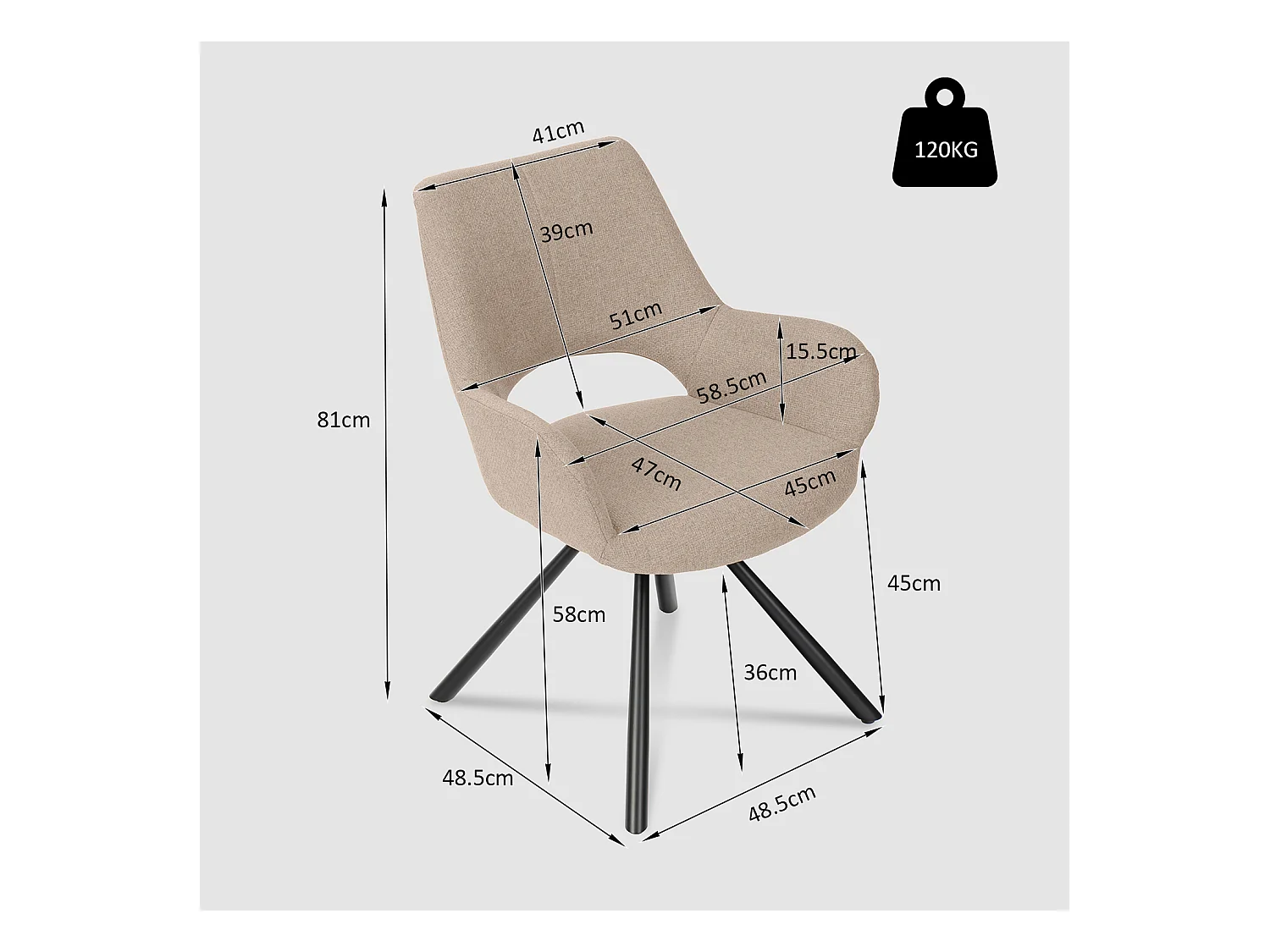 Lot de 6 chaises de salle à manger fauteuil de table en tissu style scandinave