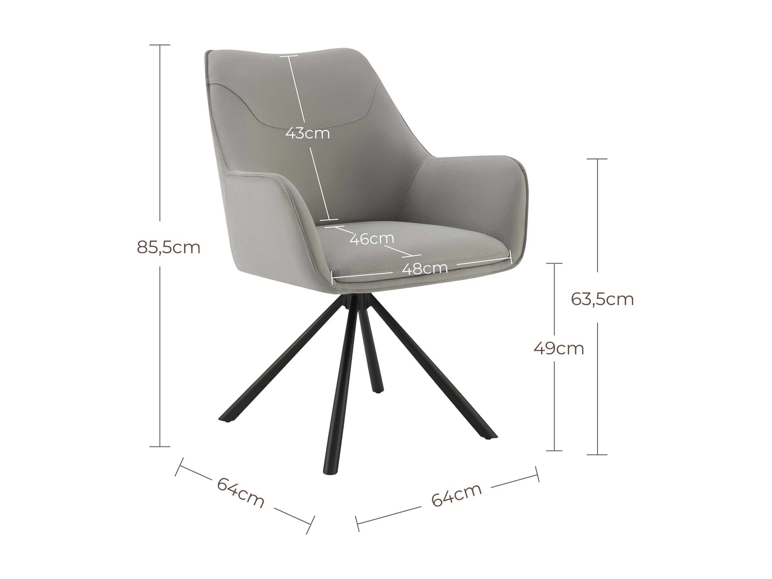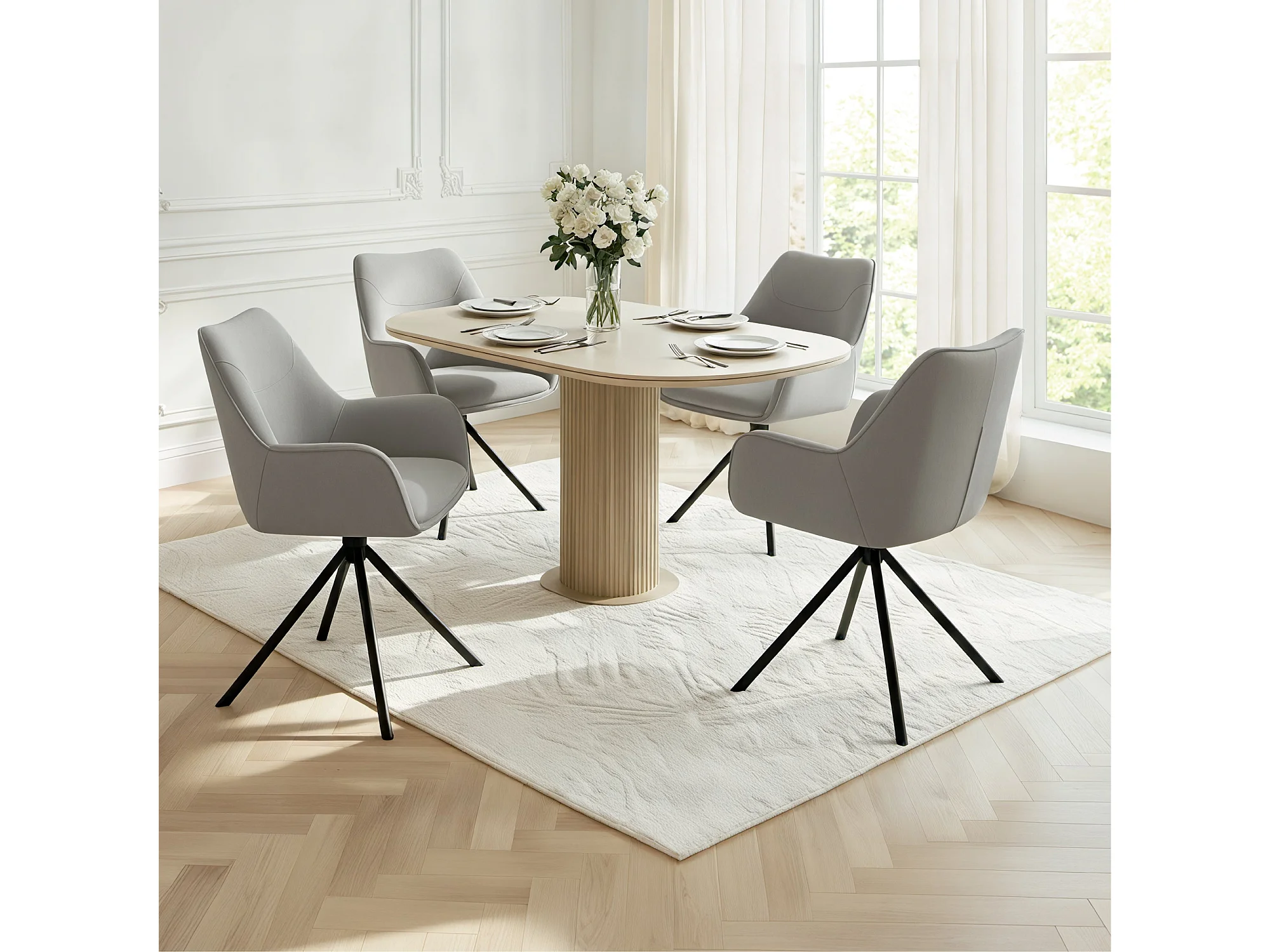 Lot de 6 Chaises de Salle à Manger, Fauteuil Pivotant à 360 degrés, Chaise de Cuisine Coussinets de Pied Réglables Gris