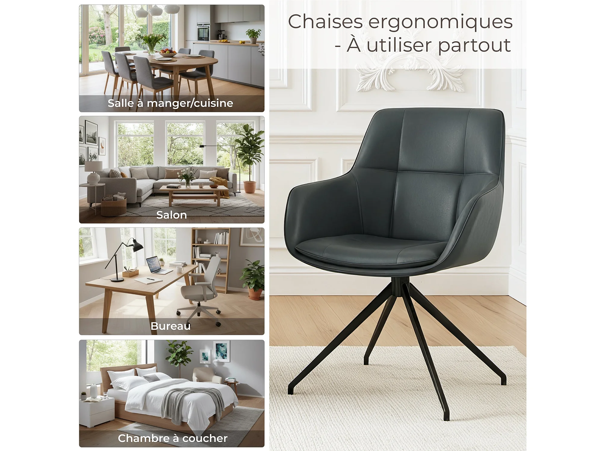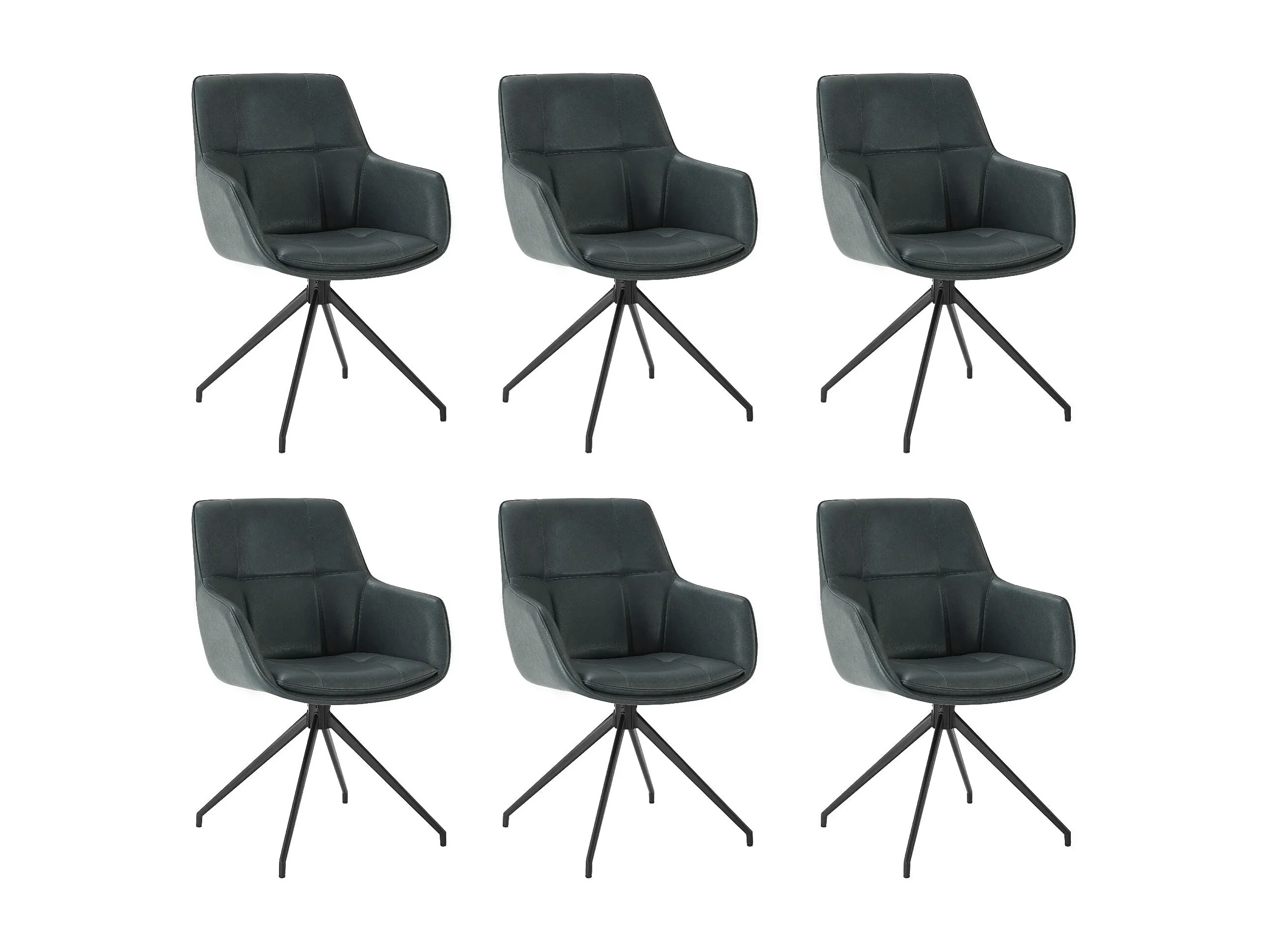 Lot de 6 Chaises de Salle à Manger, Fauteuil Pivotant à 360 degrés, Chaise de Cuisine en PU Coussinets de Pied Réglables Bleu Foncé