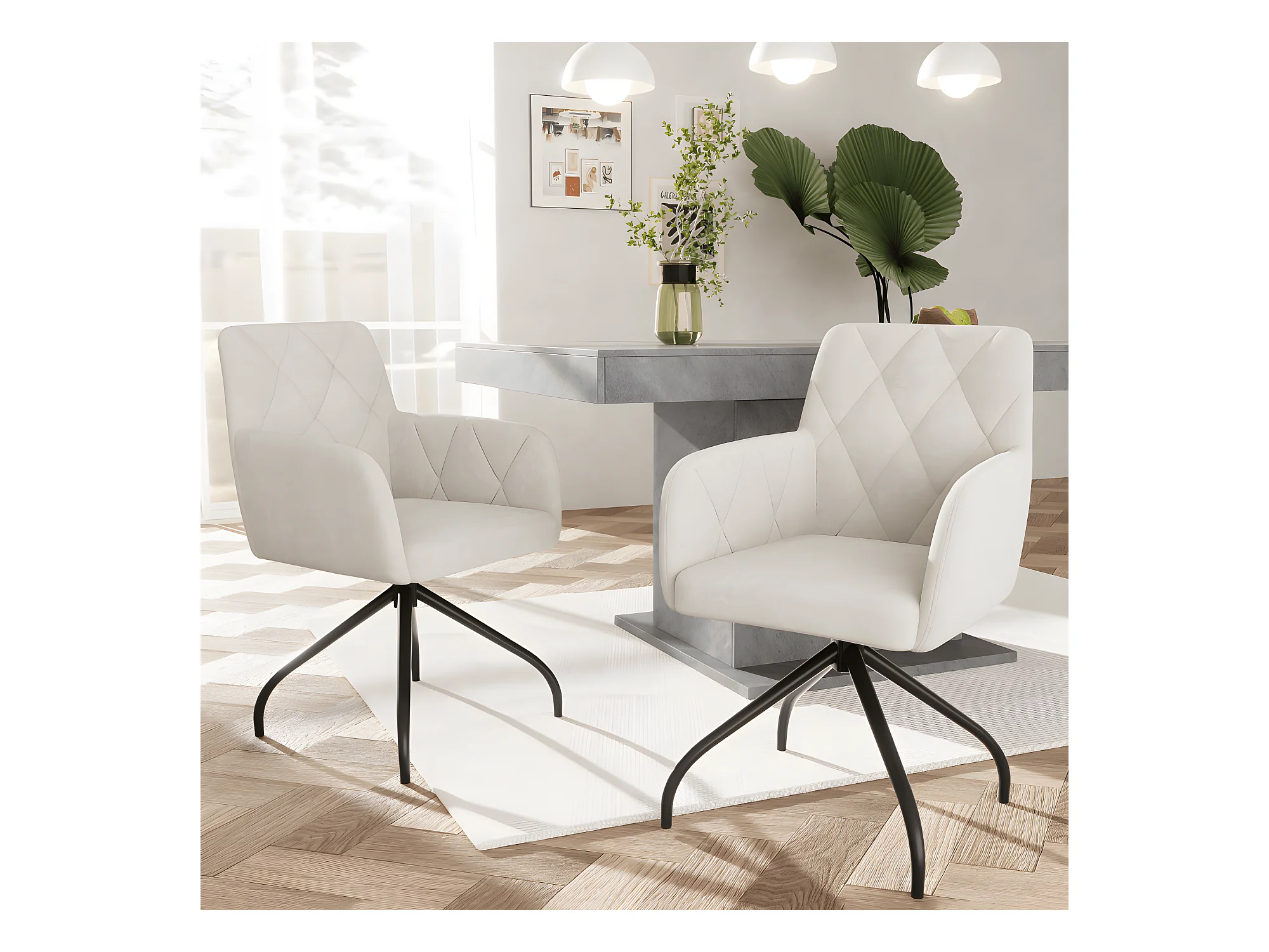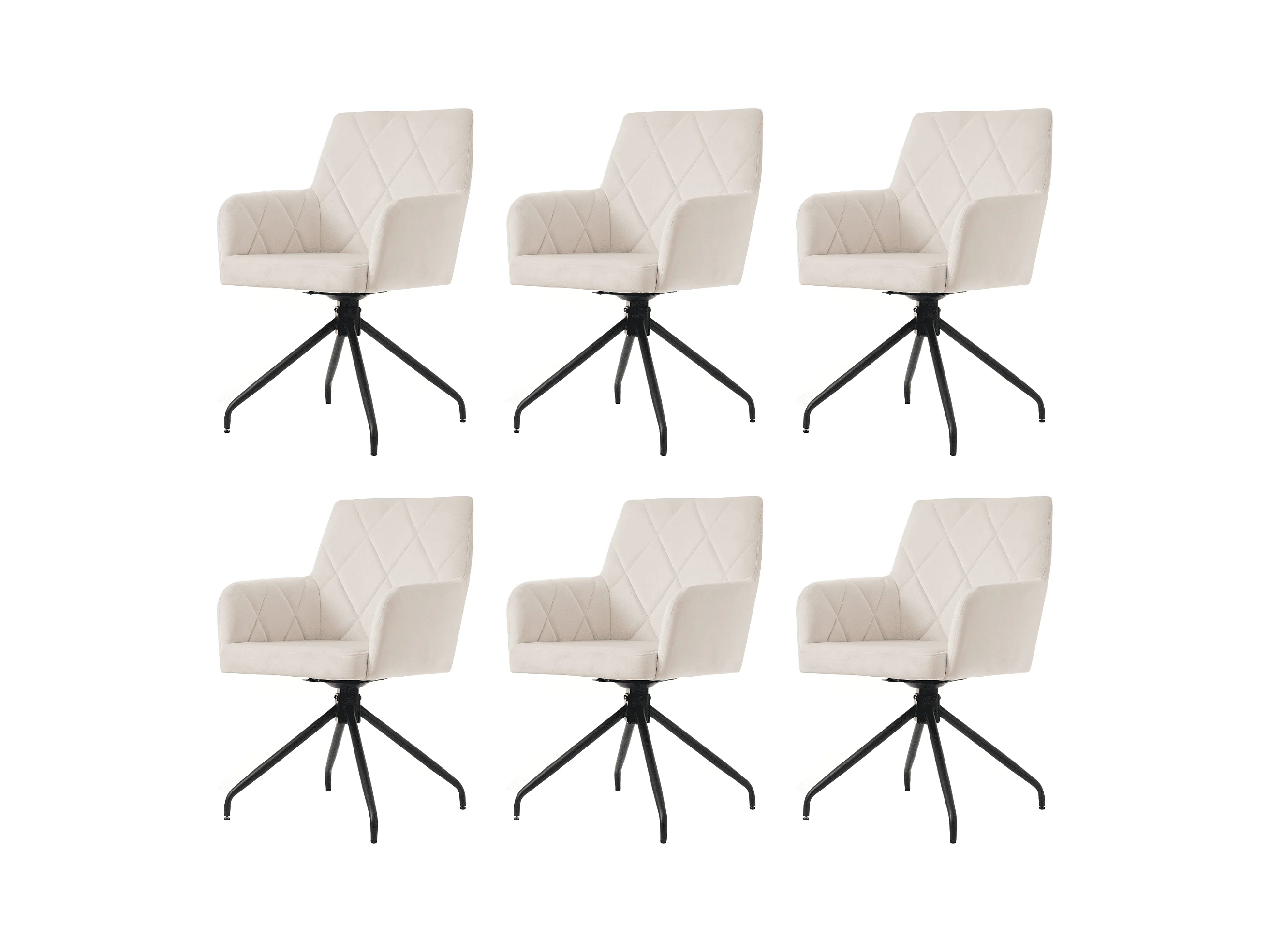 Lot de 6 chaises de salle à manger pivotantes à 360° avec motif diamant, chaise de salon moderne, velours, beige