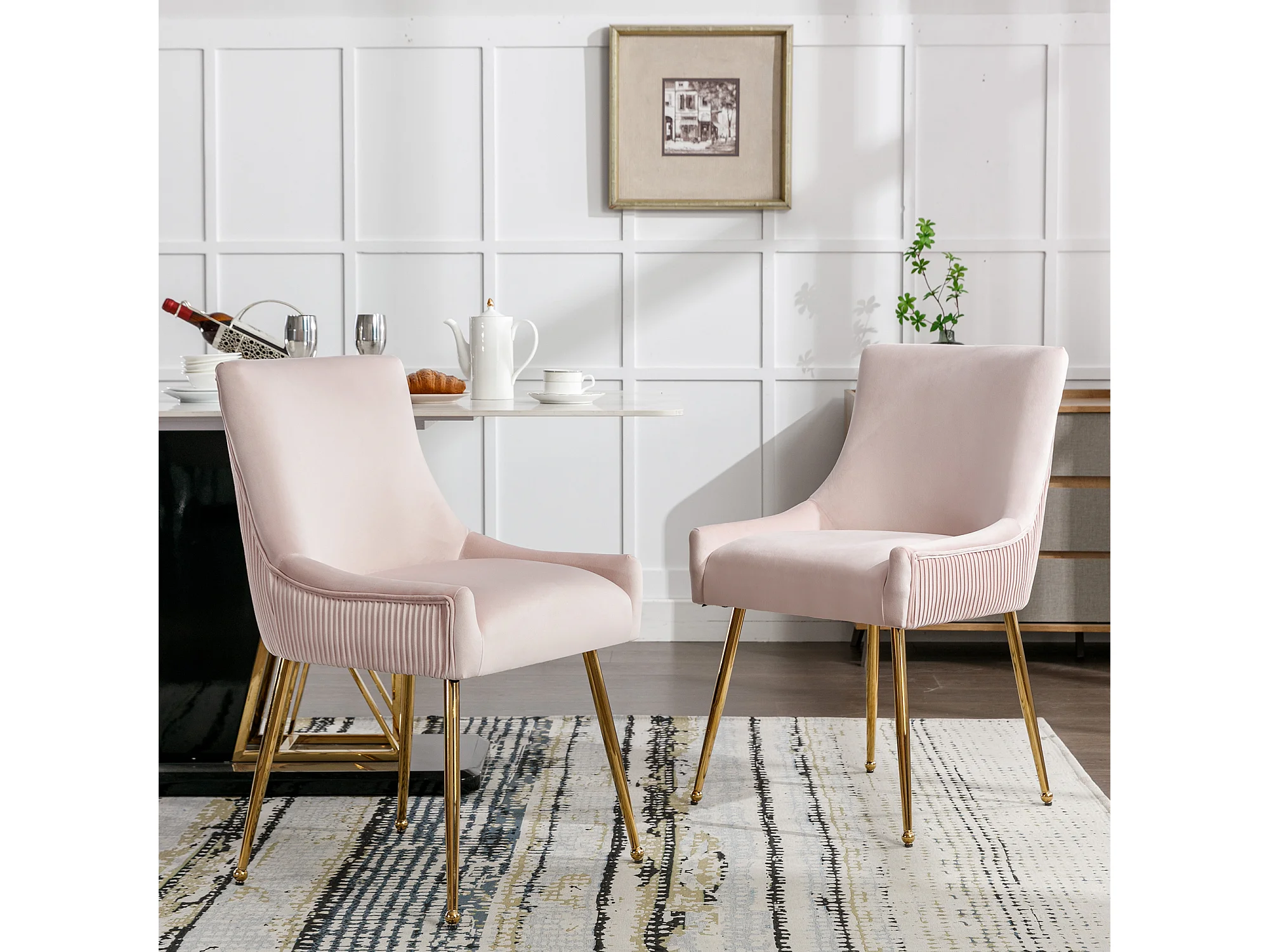Lot de 6 Chaises de salle à manger rembourré pieds en Métal Doré - Rose