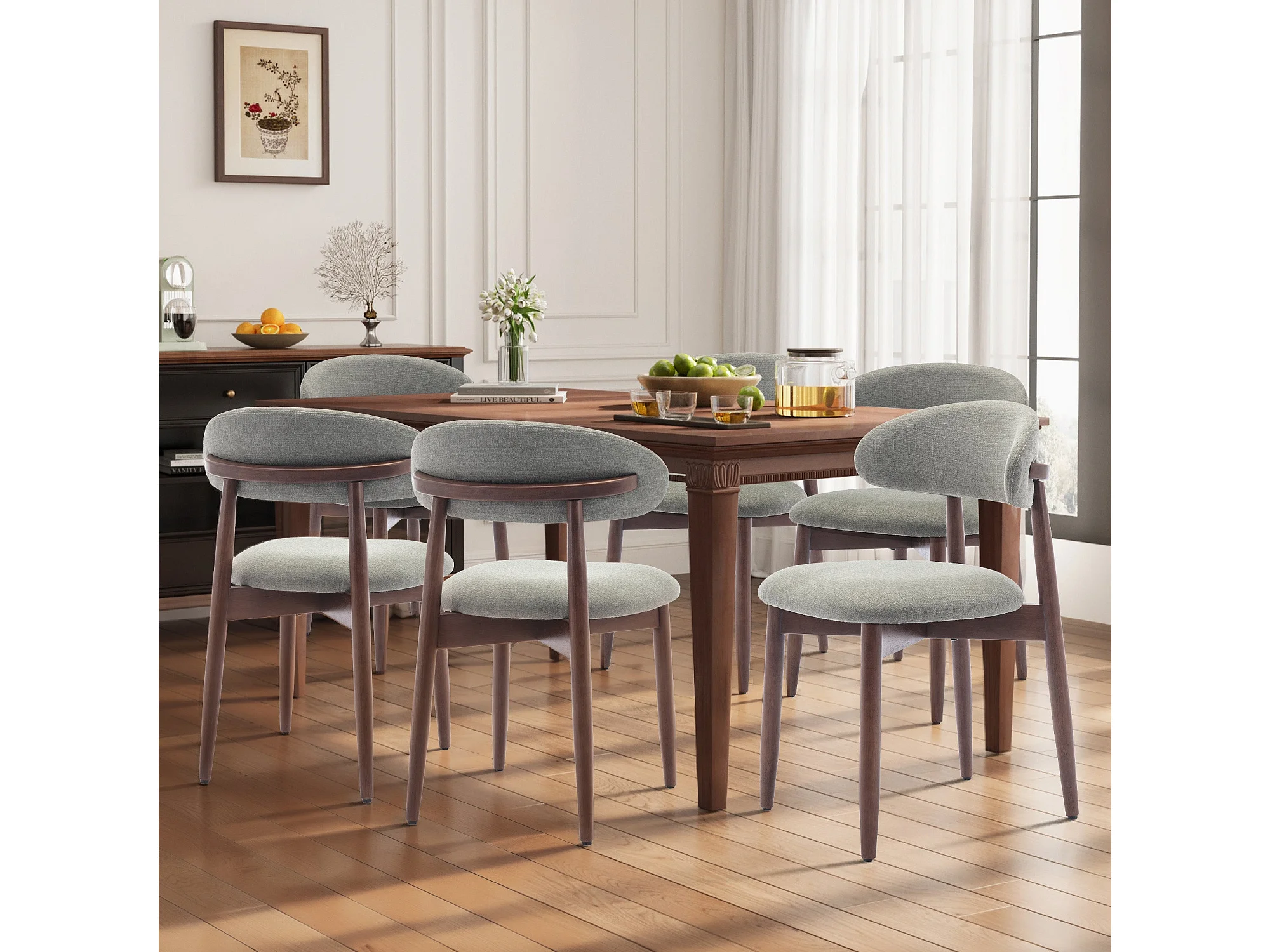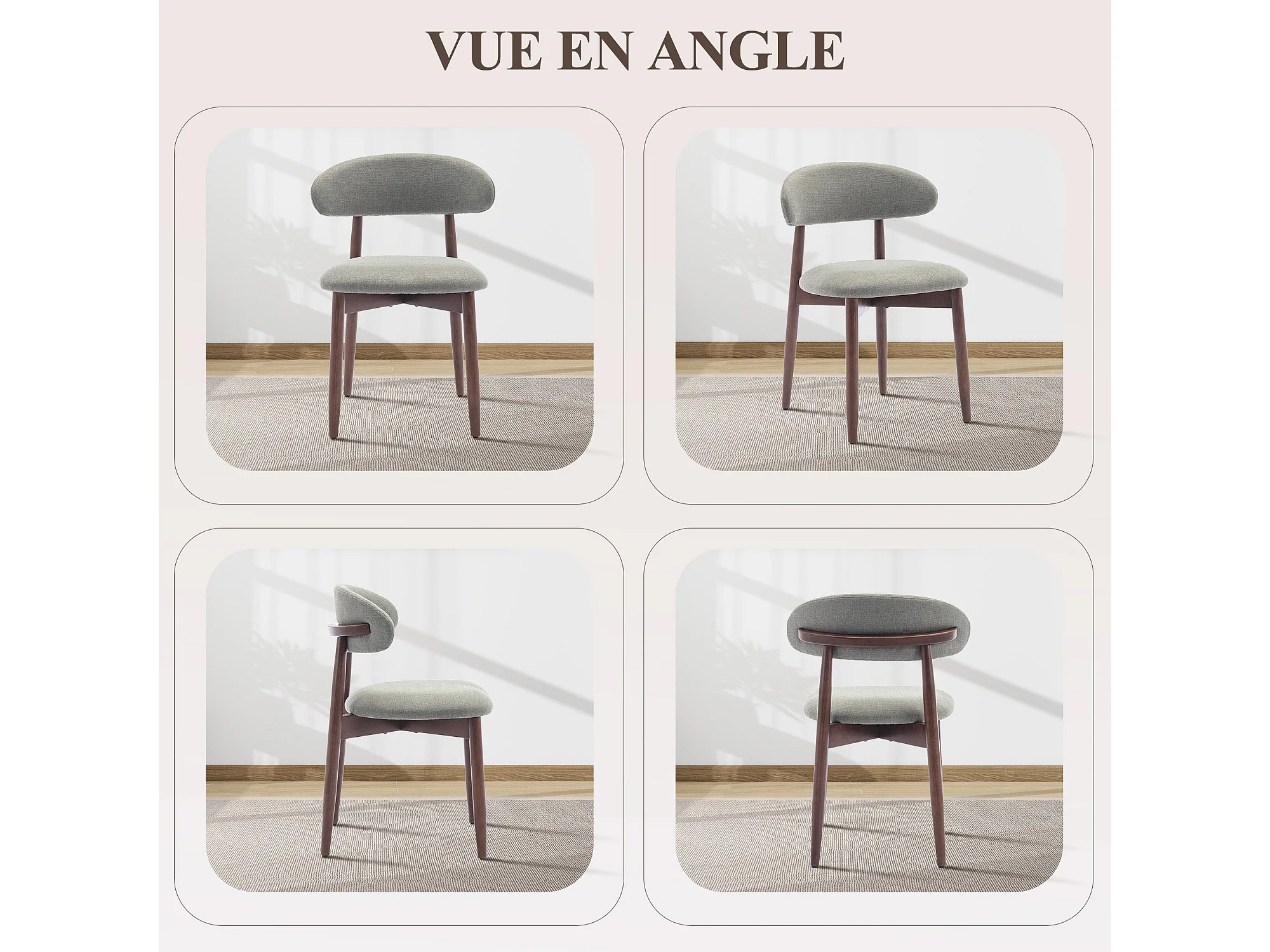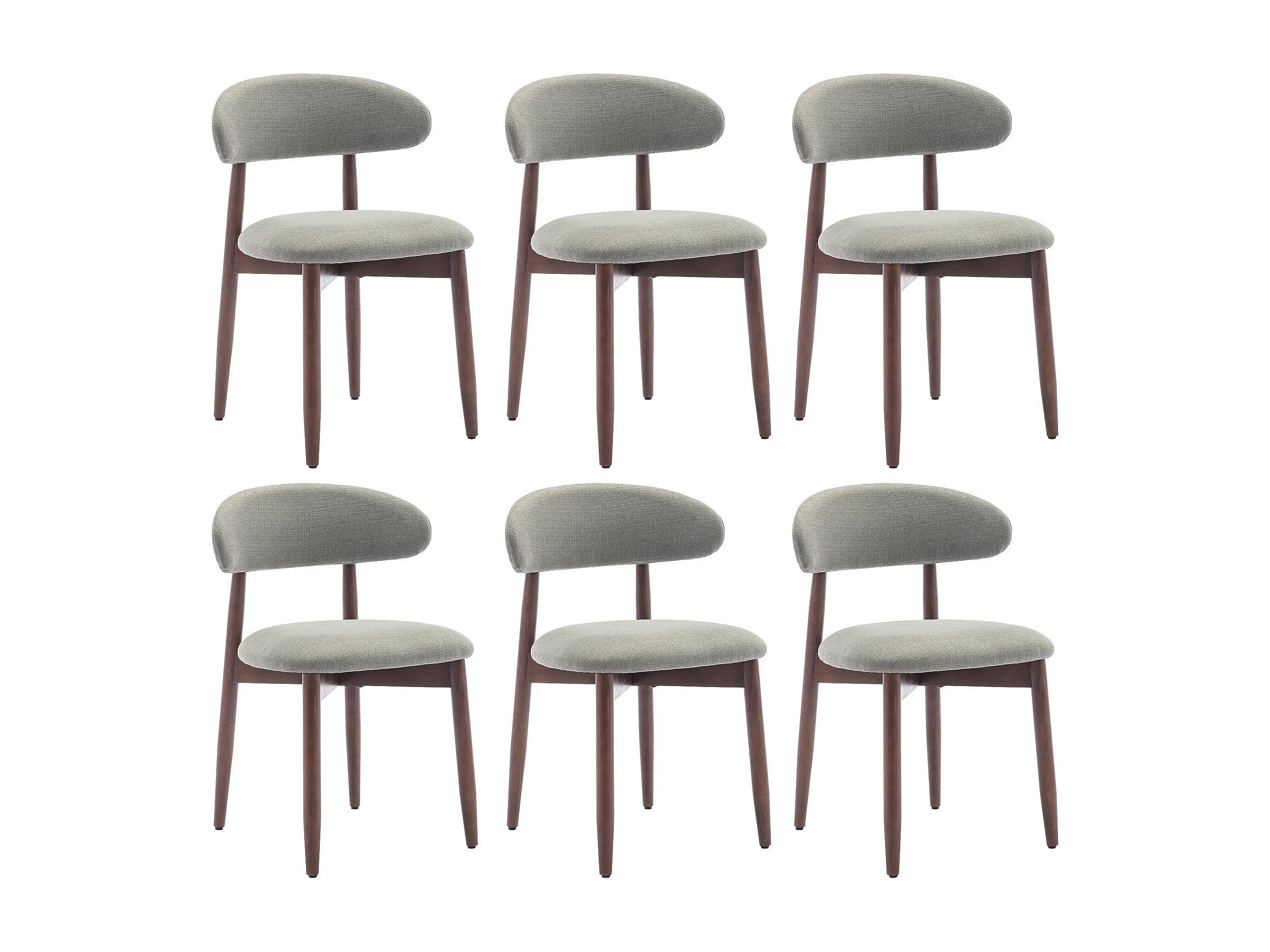 Lot de 6 chaises de salle à manger vert clair SMARTUE – Pieds en bois massif, dossier incurvé, assise en tissu