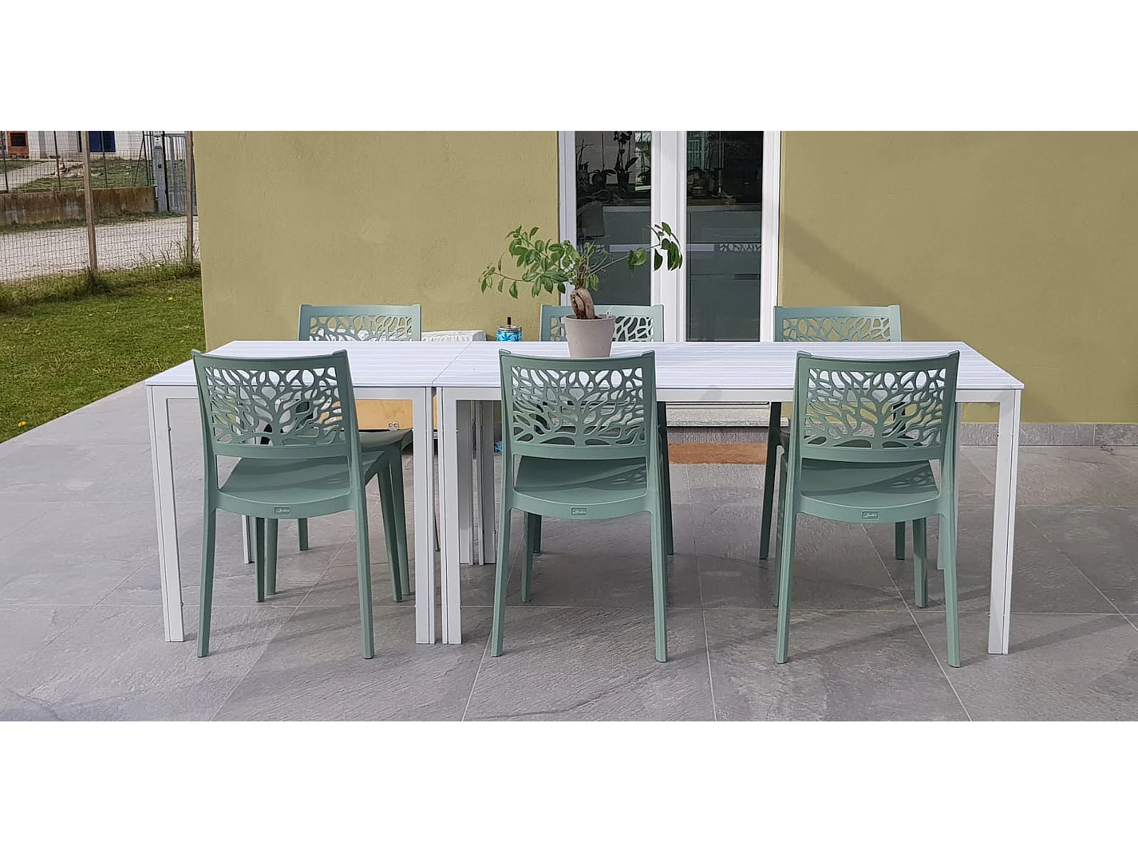 Lot de 6 chaises en polypropylène renforcé de fibre de verre empilables pour extérieur et jardin, bar, restaurant, cuisine design moderne - Flora - Vert sauge