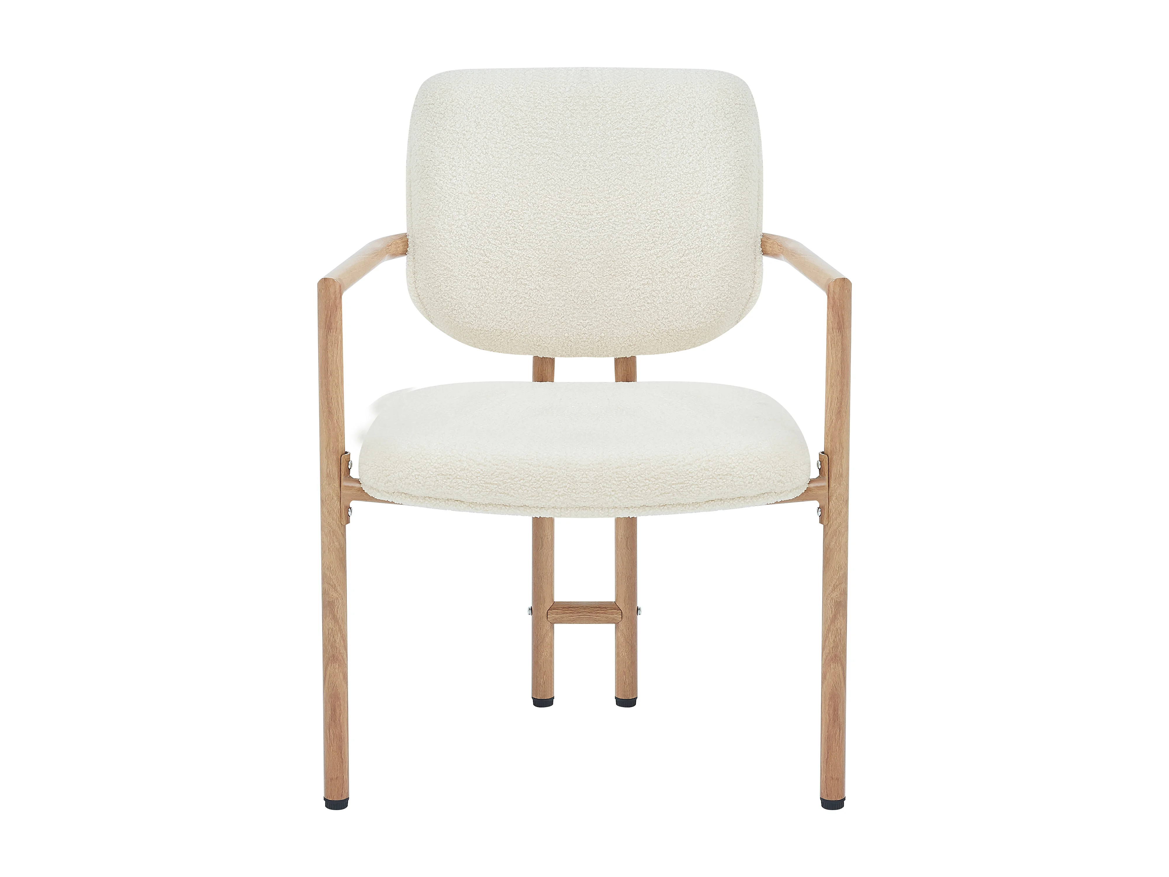 Lot de 6 chaises en tissu bouclé beige - Cadre en métal aspect bois