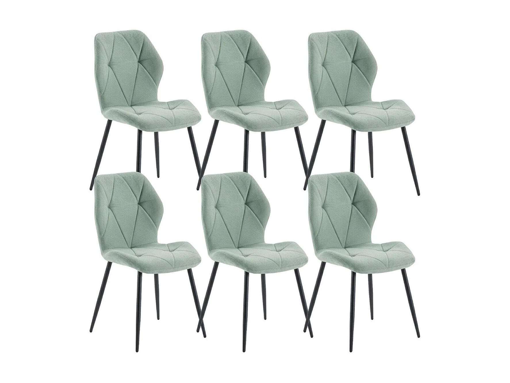 Lot de 6 chaises en tissu polyester doux aigue-marine et pieds en métal laqué noir - LUCIANA
