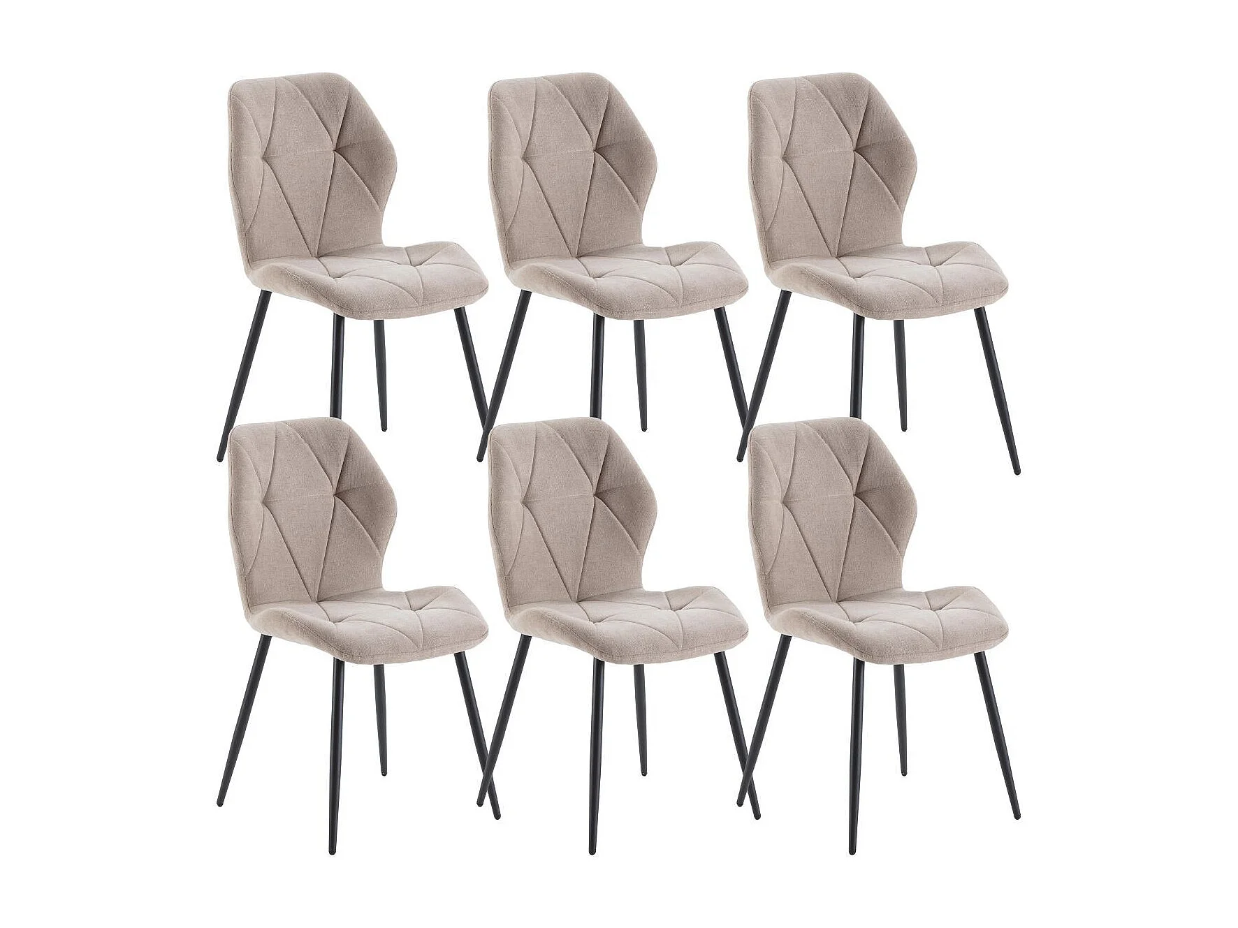 Lot de 6 chaises en tissu polyester doux taupe et pieds en métal laqué noir - LUCIANA