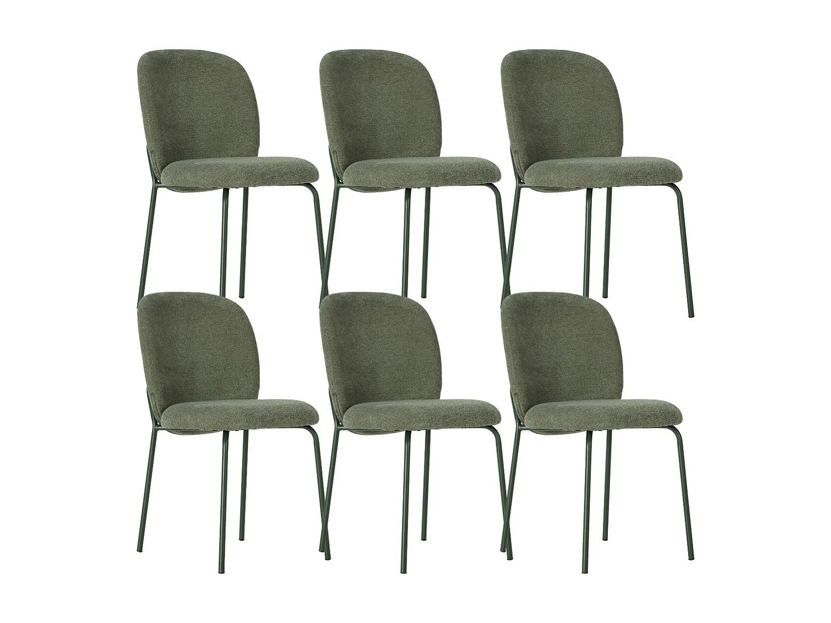 Lot de 6 chaises en tissu polyester doux vert et pieds en métal laqué noir - DARRIS