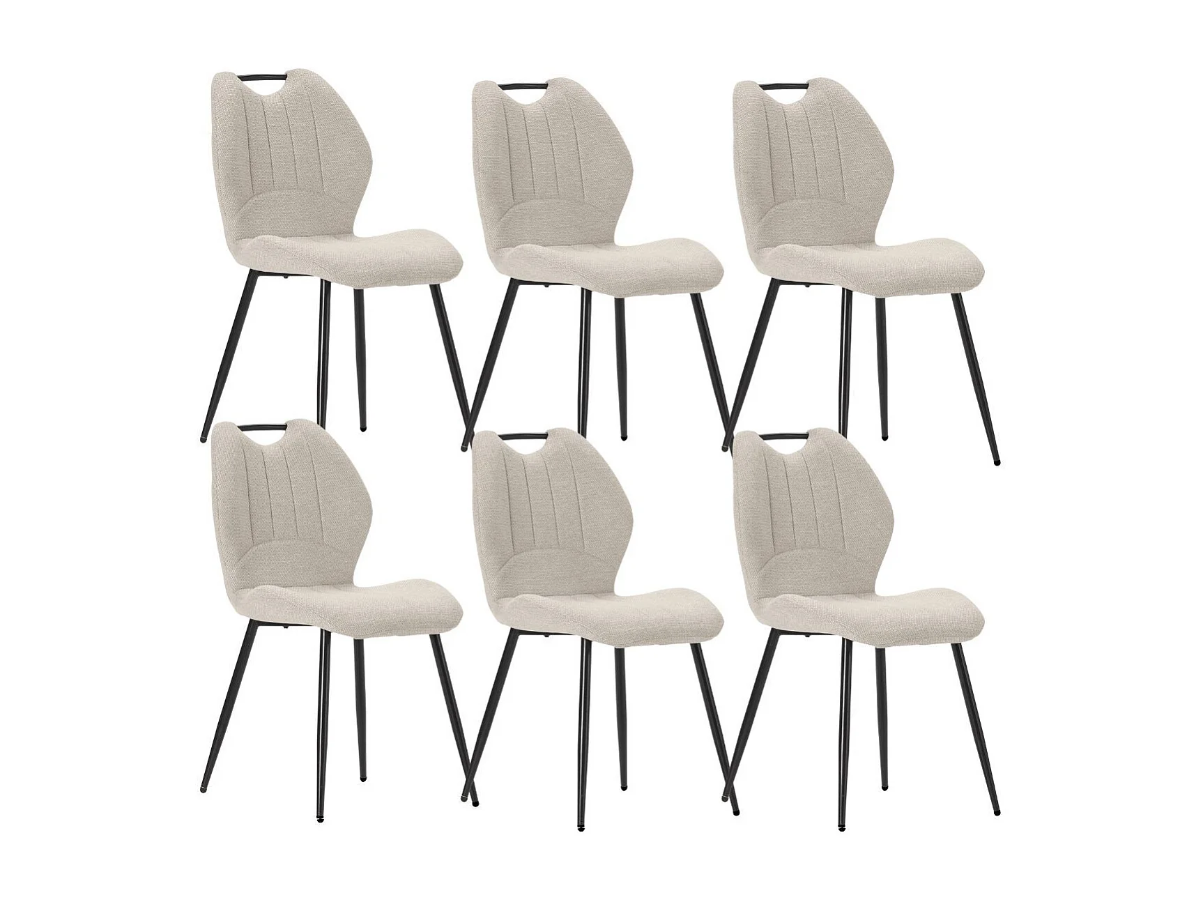 Lot de 6 chaises en tissu polyester maillé beige avec poignée et pieds en métal laqué noir - MILDA