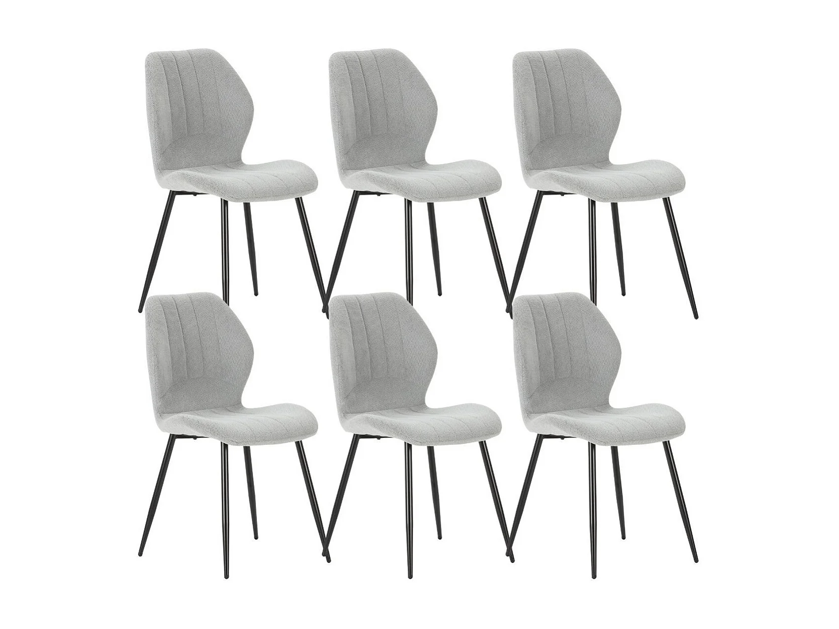 Lot de 6 chaises en tissu polyester maillé gris clair et pieds en métal laqué noir - MALDI