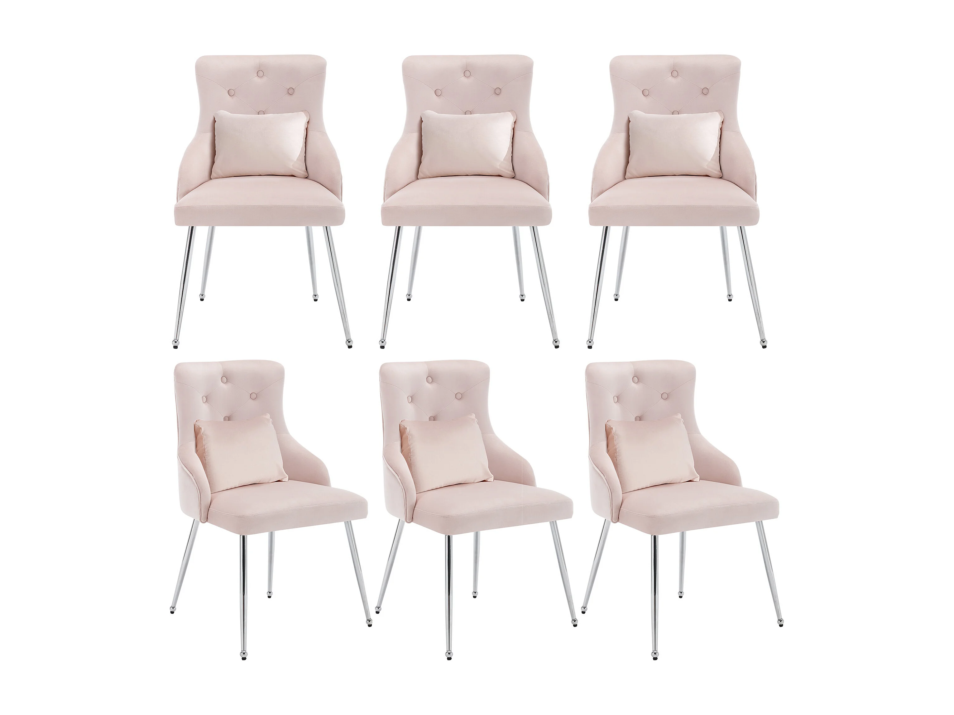 Lot de 6 chaises en velours avec coussin lombaire et pieds métal, dossier capitonné – rose