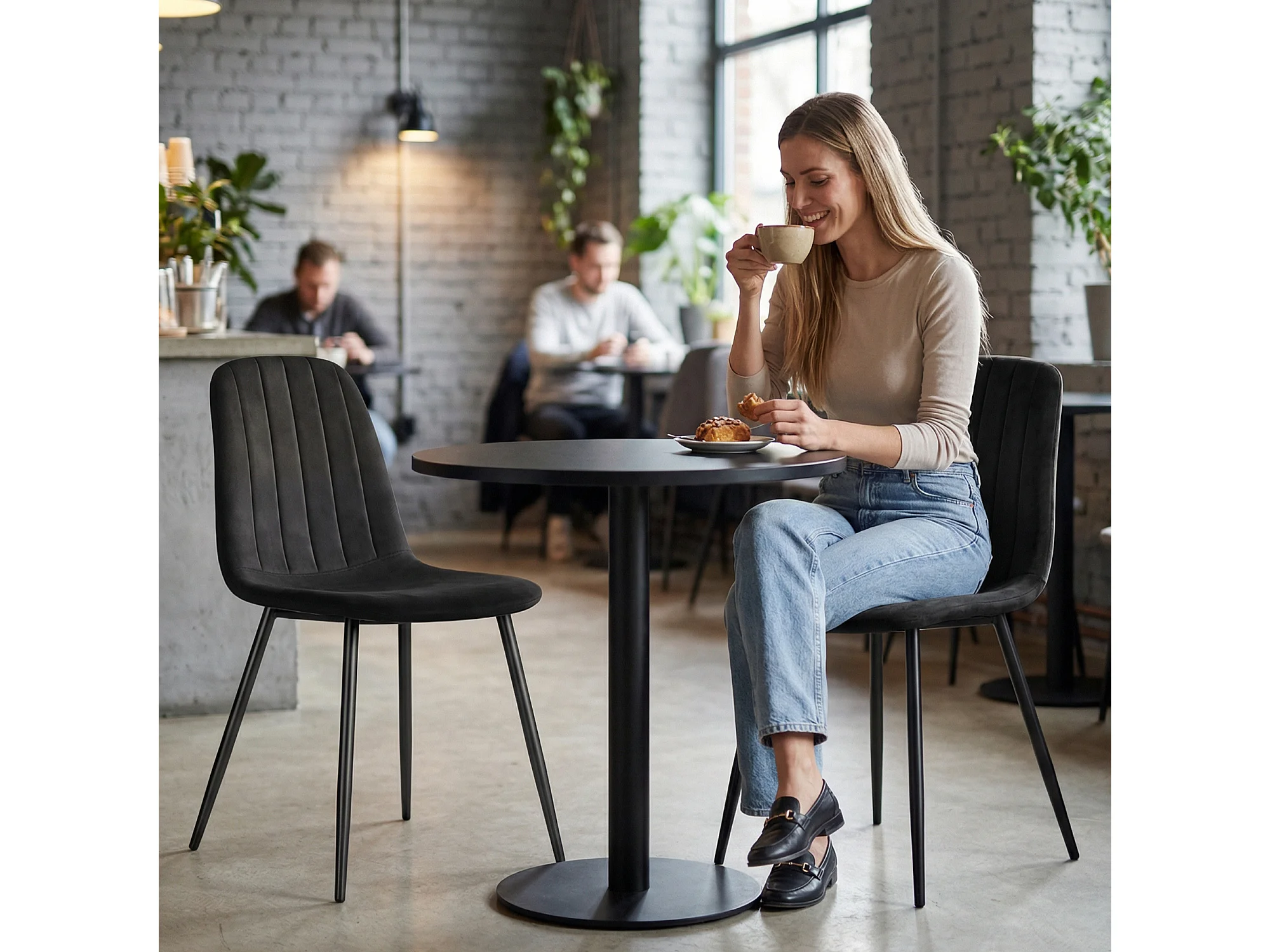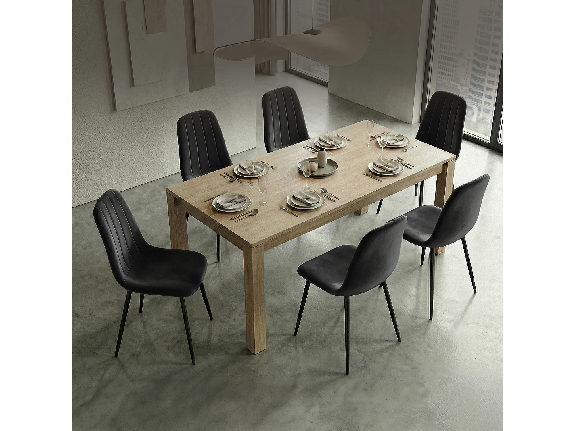 Lot de 6 Chaises en velours matelassées LUMO Noires pieds noirs