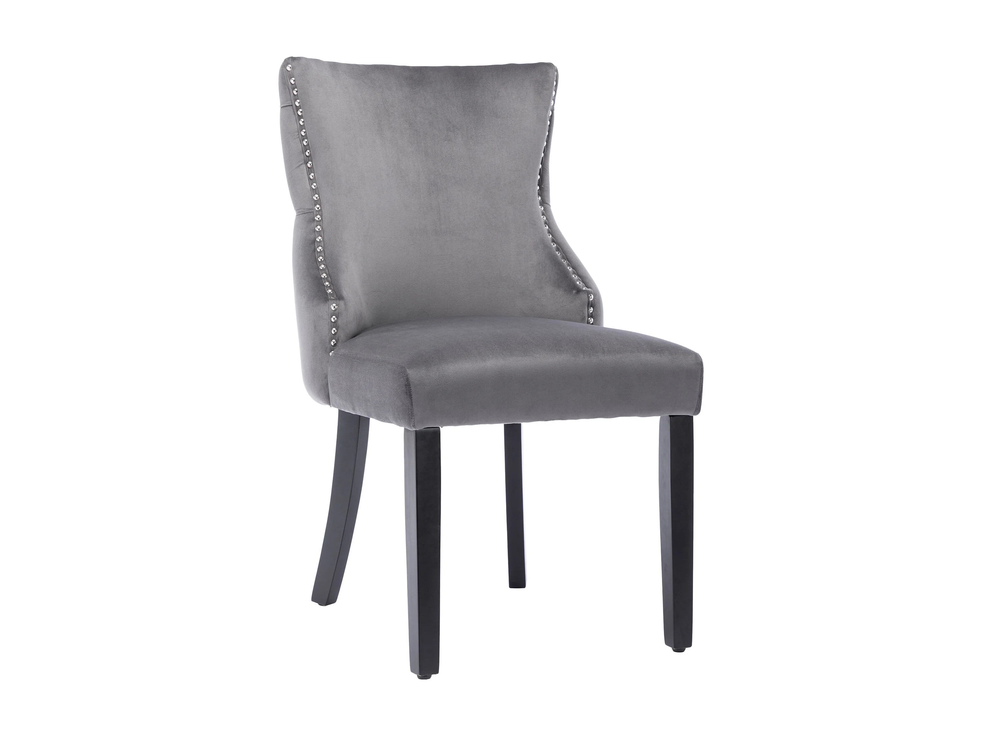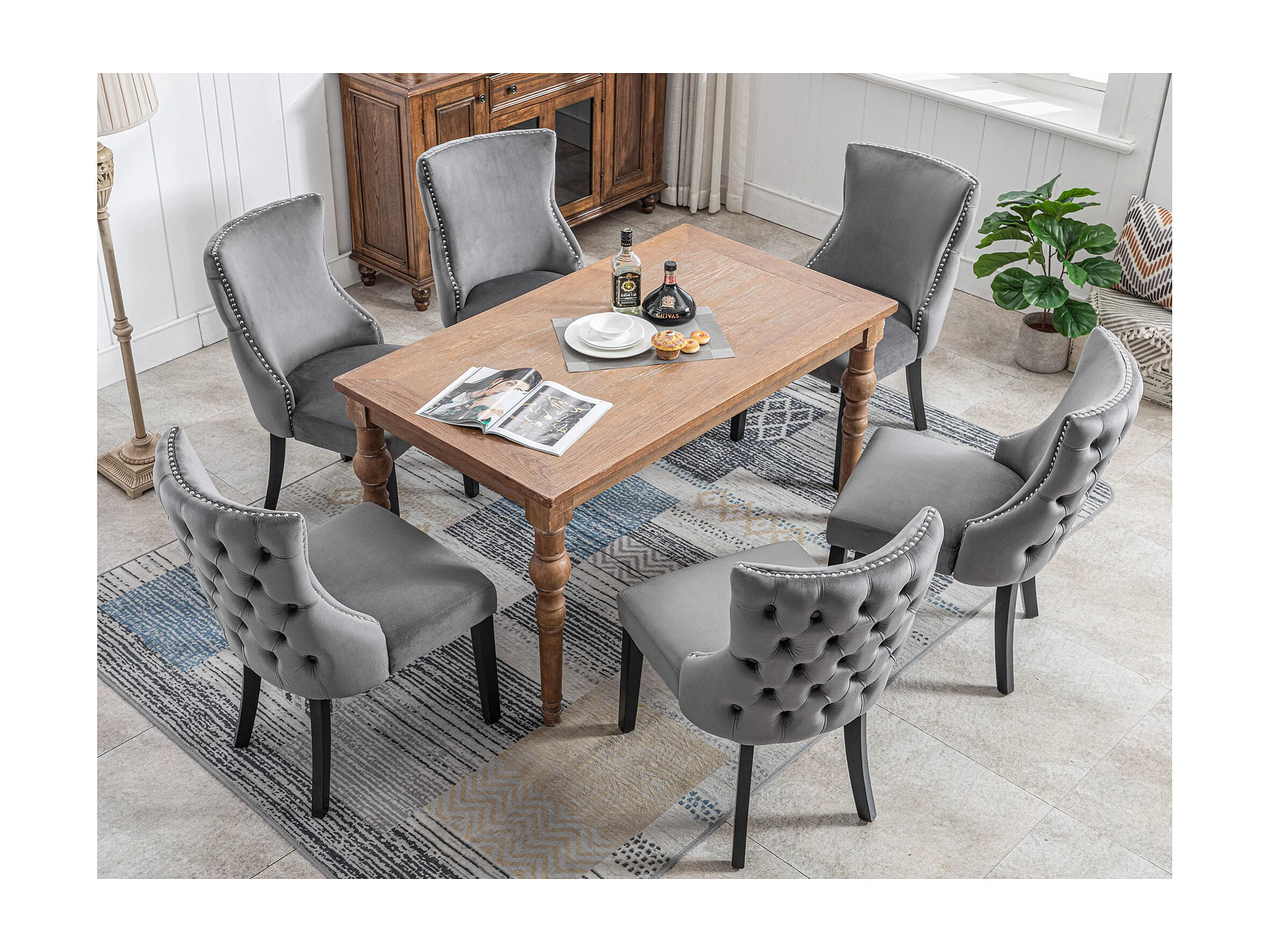 Lot de 6 chaises en velours, piètement bois massif, dossier capitonné – gris