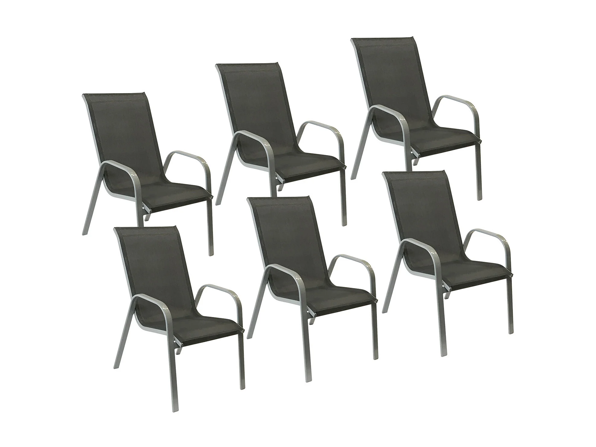 Lot de 6 chaises MARBELLA en textilène gris - aluminium gris - HAPPY GARDEN