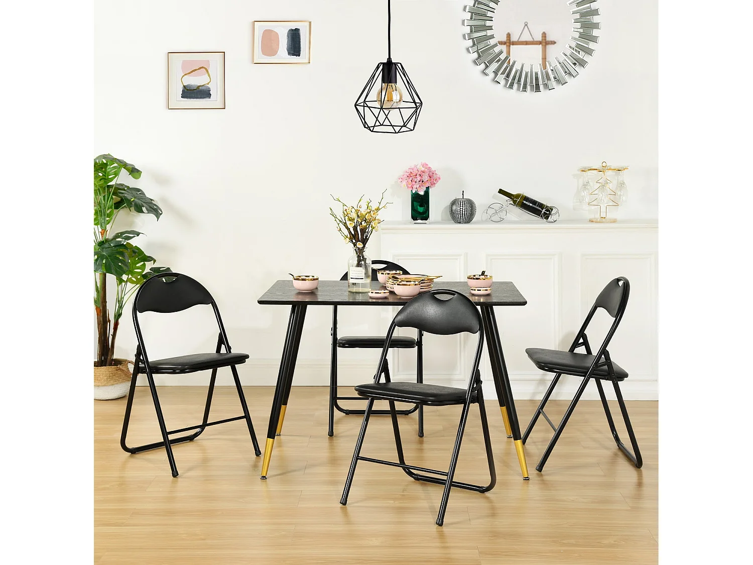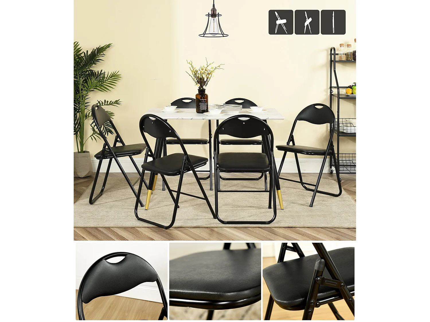 Lot de 6 Chaises Pliantes Noires en Coussin de siège en PU et pieds en métal Style Industriel