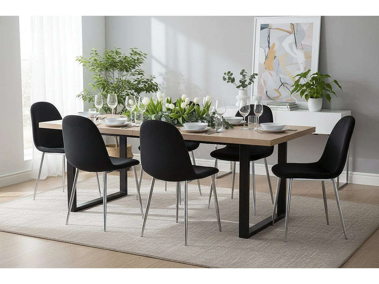 Lot de 6 chaises scandinaves velours noir pieds chrome 44x50x87 cm