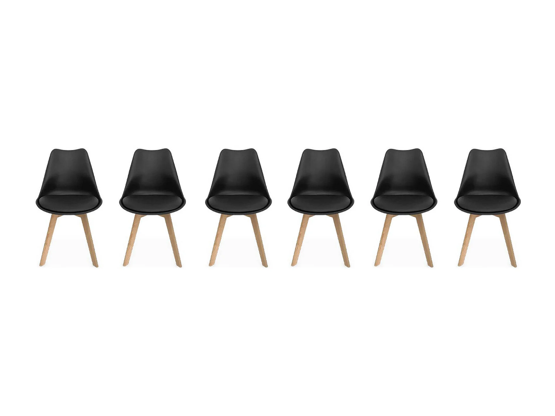 Lot de 6 chaises scandinaves. pieds bois de hêtre. chaises 1 place. noirs