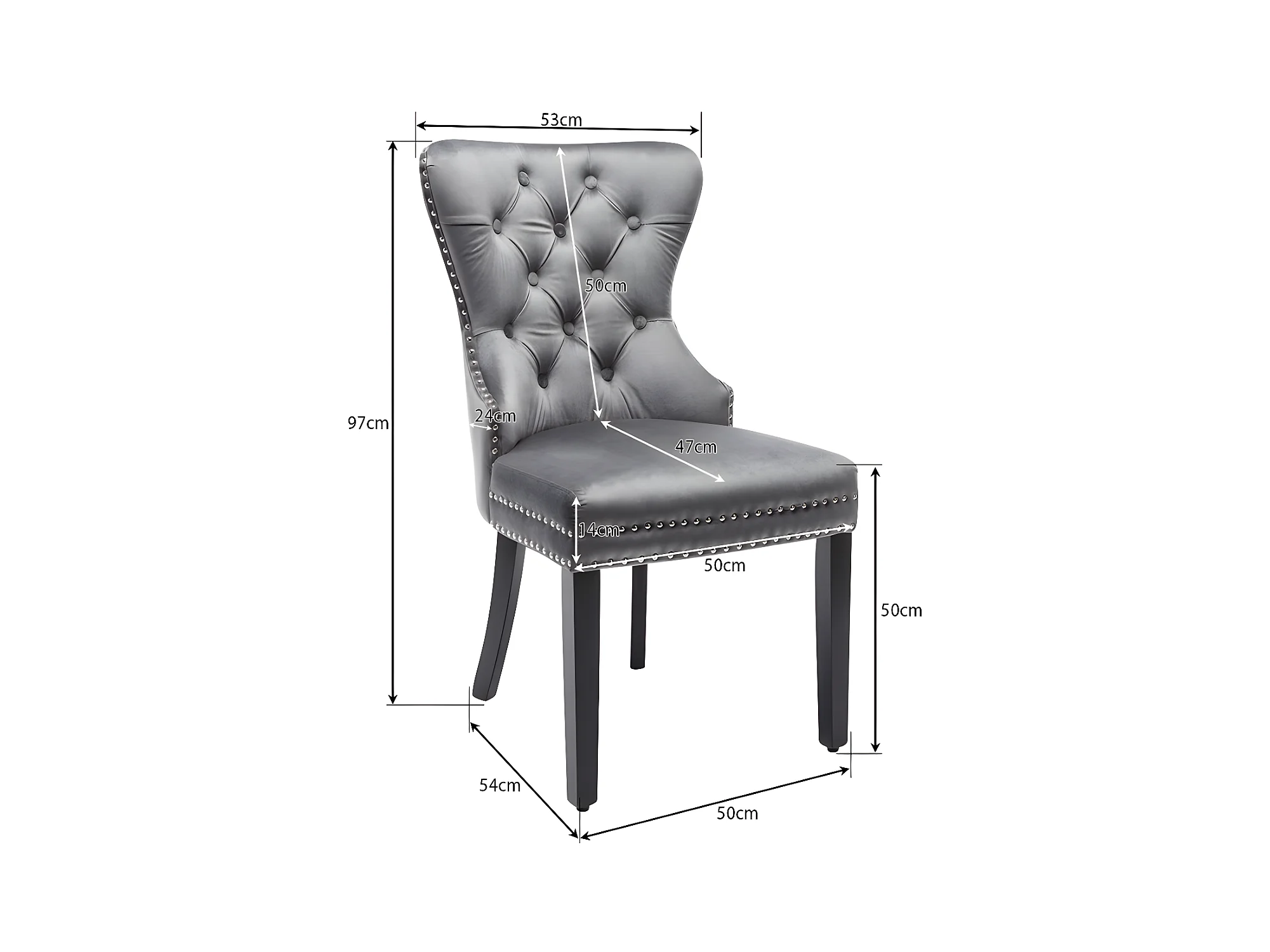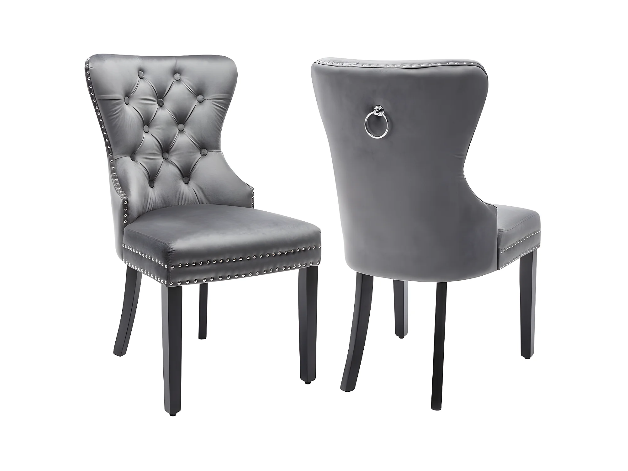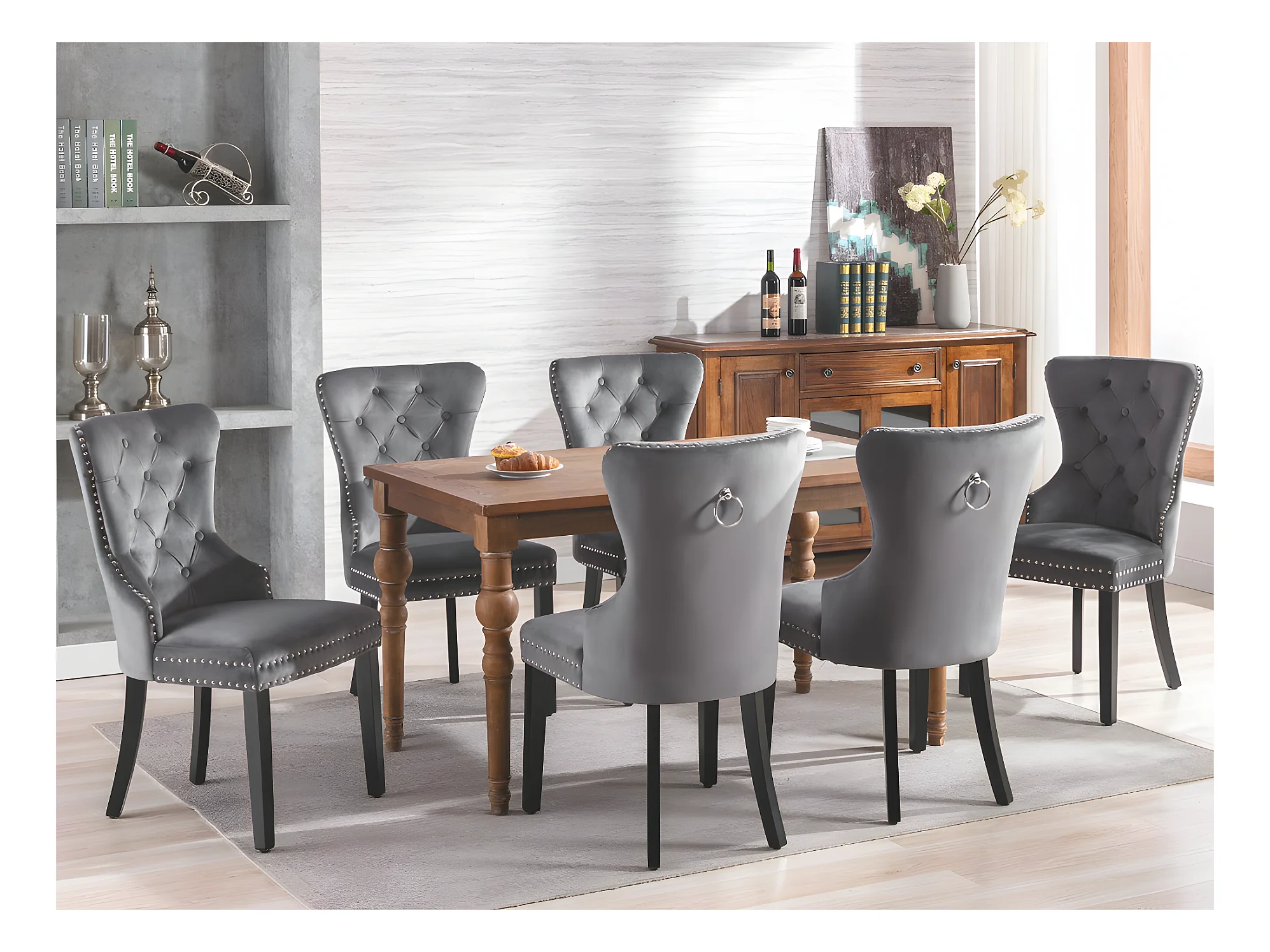 Lot de 6 Chaises scandinaves - tissu en velours - avec pieds en chêne - Gris