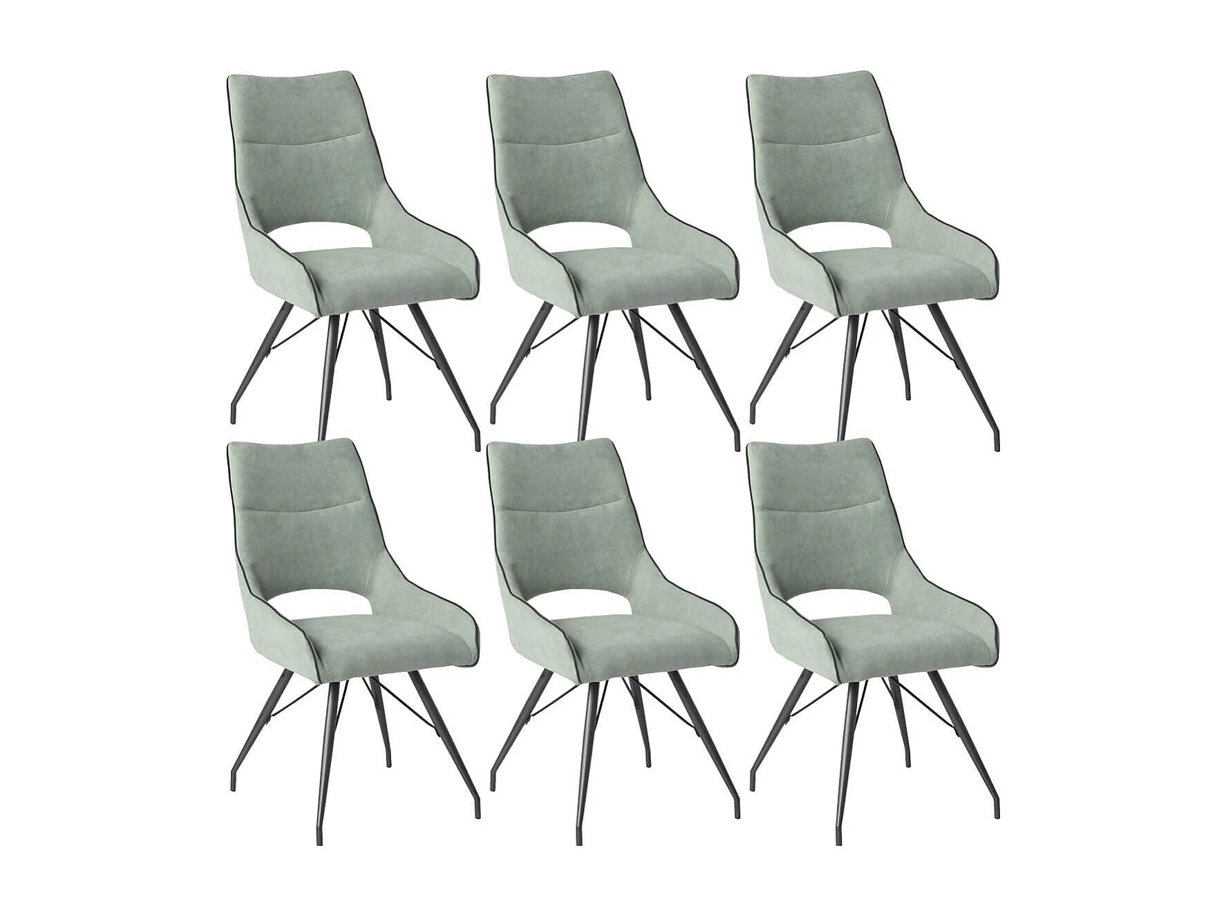Lot de 6 chaises tissu coloris vert d'eau pieds métal laqué gris - SILOUAN