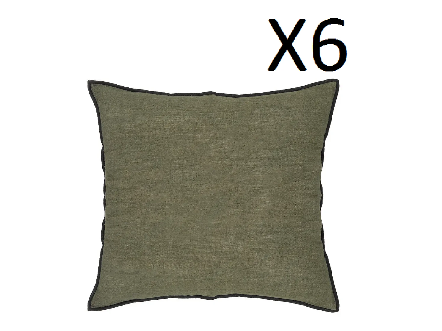 Lot de 6 coussin décoratif déhoussable en lin et coton coloris vert kaki - Longueur 45 x Profondeur 12 x Hauteur 45 cm