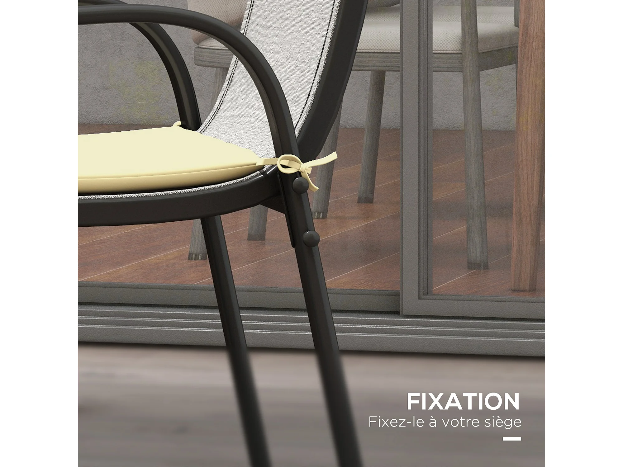Lot de 2 coussins galettes de chaise de jardin - dim. 112L x 51l x ép. 8 cm - cordons attache - polyester déperlant beige