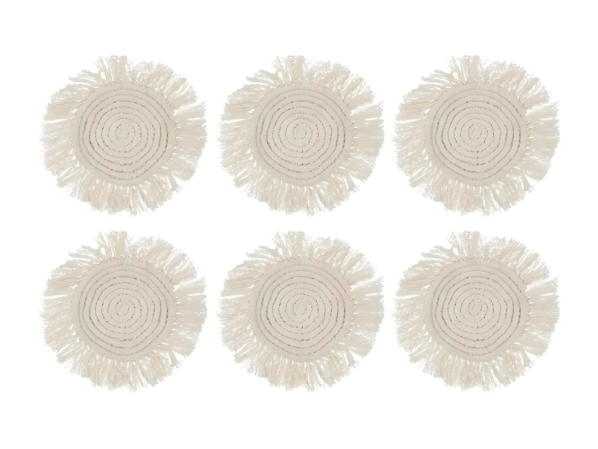 Lot de 6 Dessous de Verre "Franges" 14cm Beige