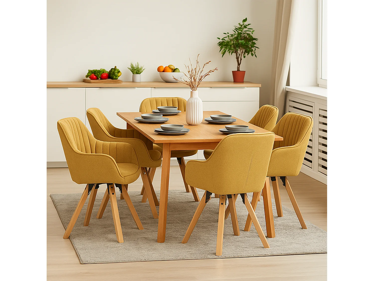 Lot de 6 fauteuil de salle à manger rotatif style scandinave en jaune tissu,CARSON