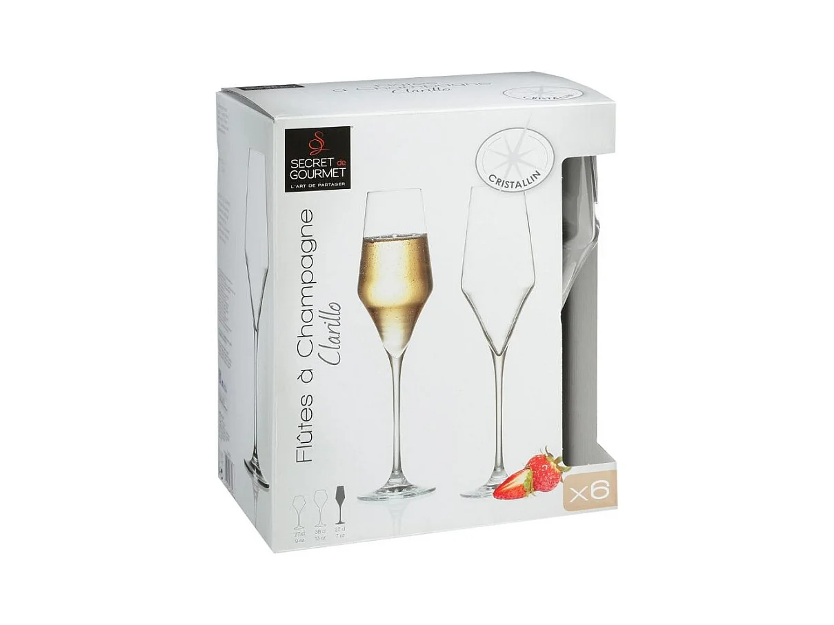 Lot de 6 Flûtes à Champagne "Clarillo" 22cl Transparent