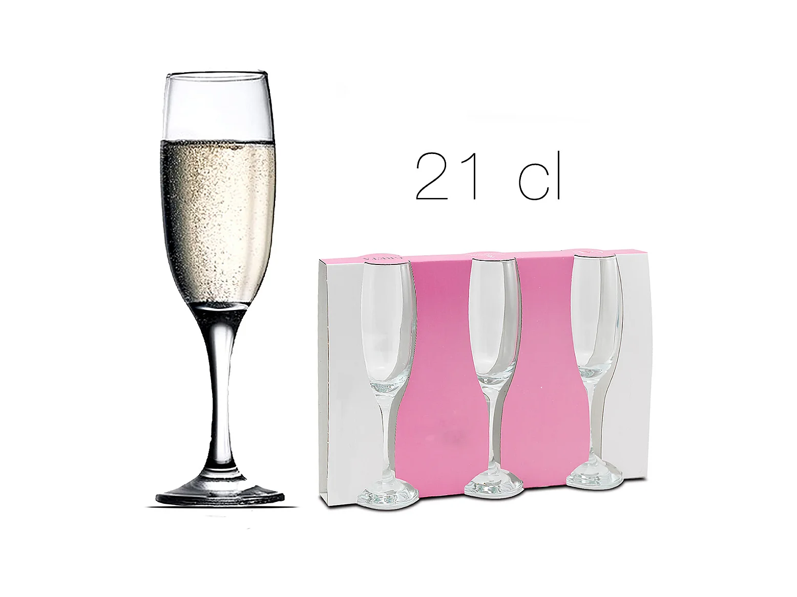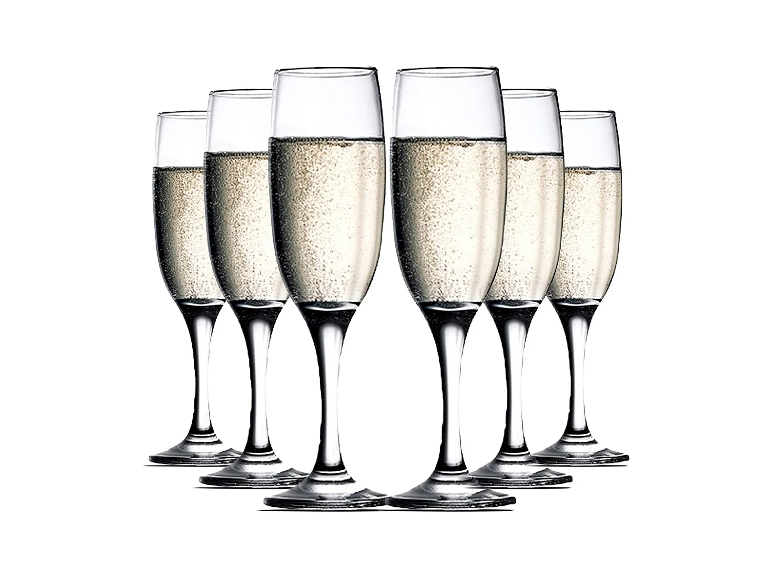Lot de 6 flutes à champagne, coupe à champagne en verre transparent - 21.5 cl