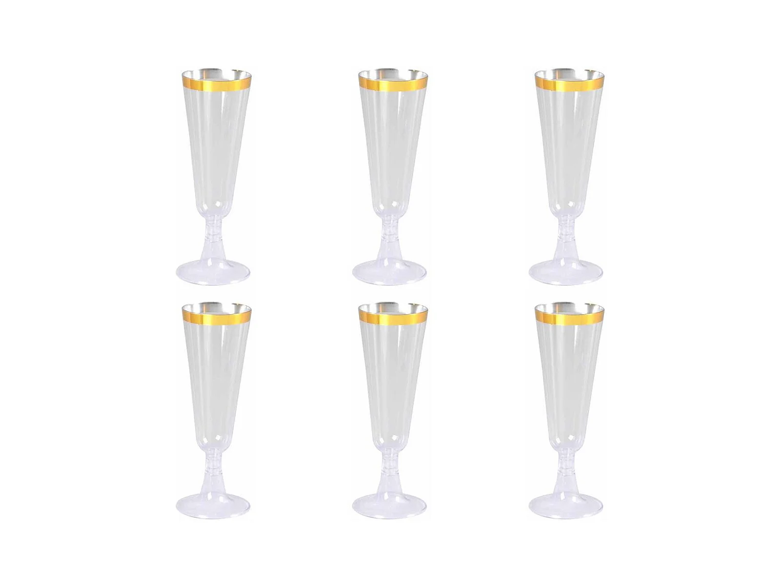 Lot de 6 Flûtes à Champagne Réutilisable "Liseré" 15cl Or