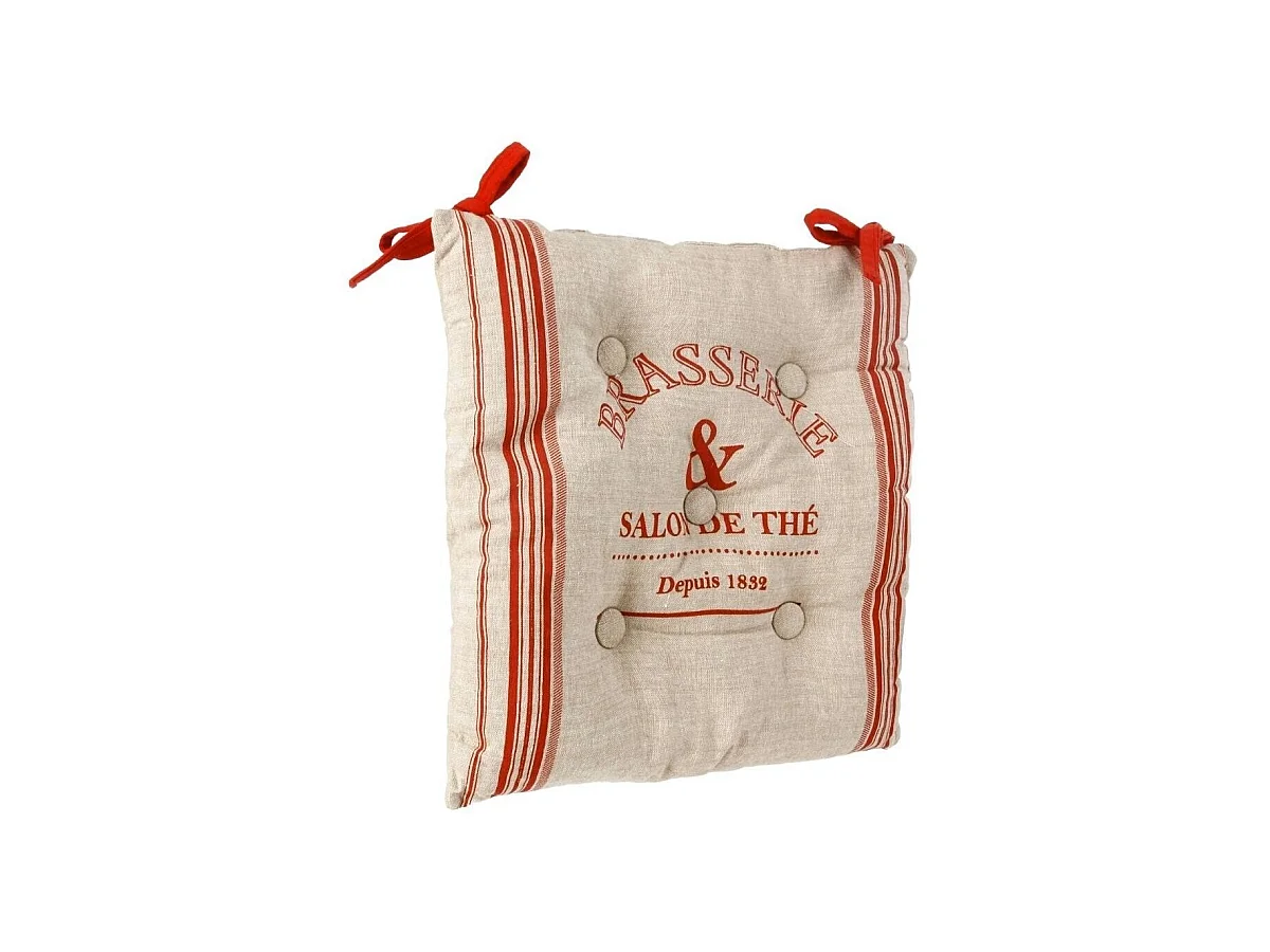 Lot de 6 Galettes de chaise en Coton Beige et Rouge 40 x 40 cm