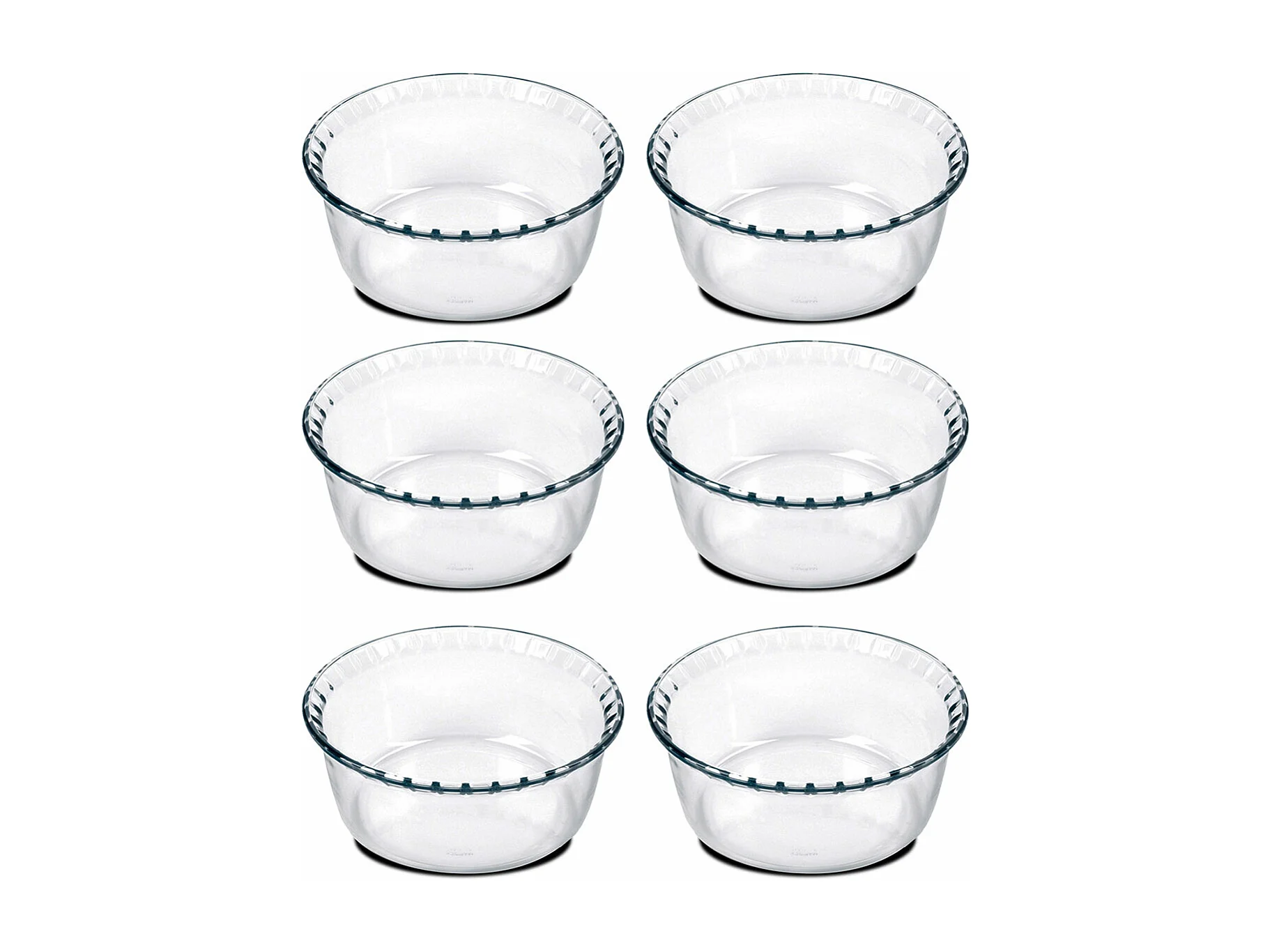 Lot de 6 moule soufflé rond, moule en verre fileté, plateau réfractaire, plat à four moule de cuisson, capacité 2.4 L - Diamètre 21.5 x Hauteur 9.8 cm