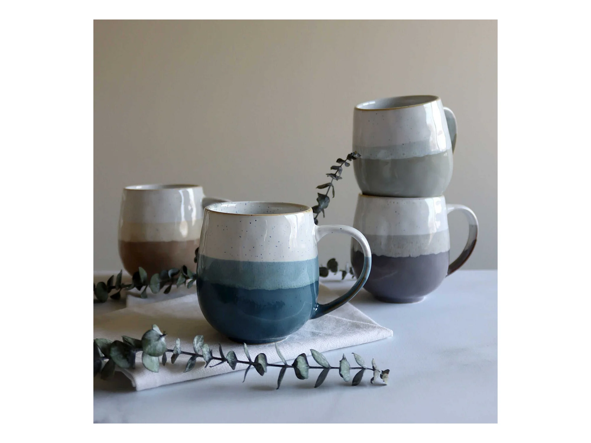 Novastyl - Lot De 6 Mugs Rita Bleu 44cl En Gres