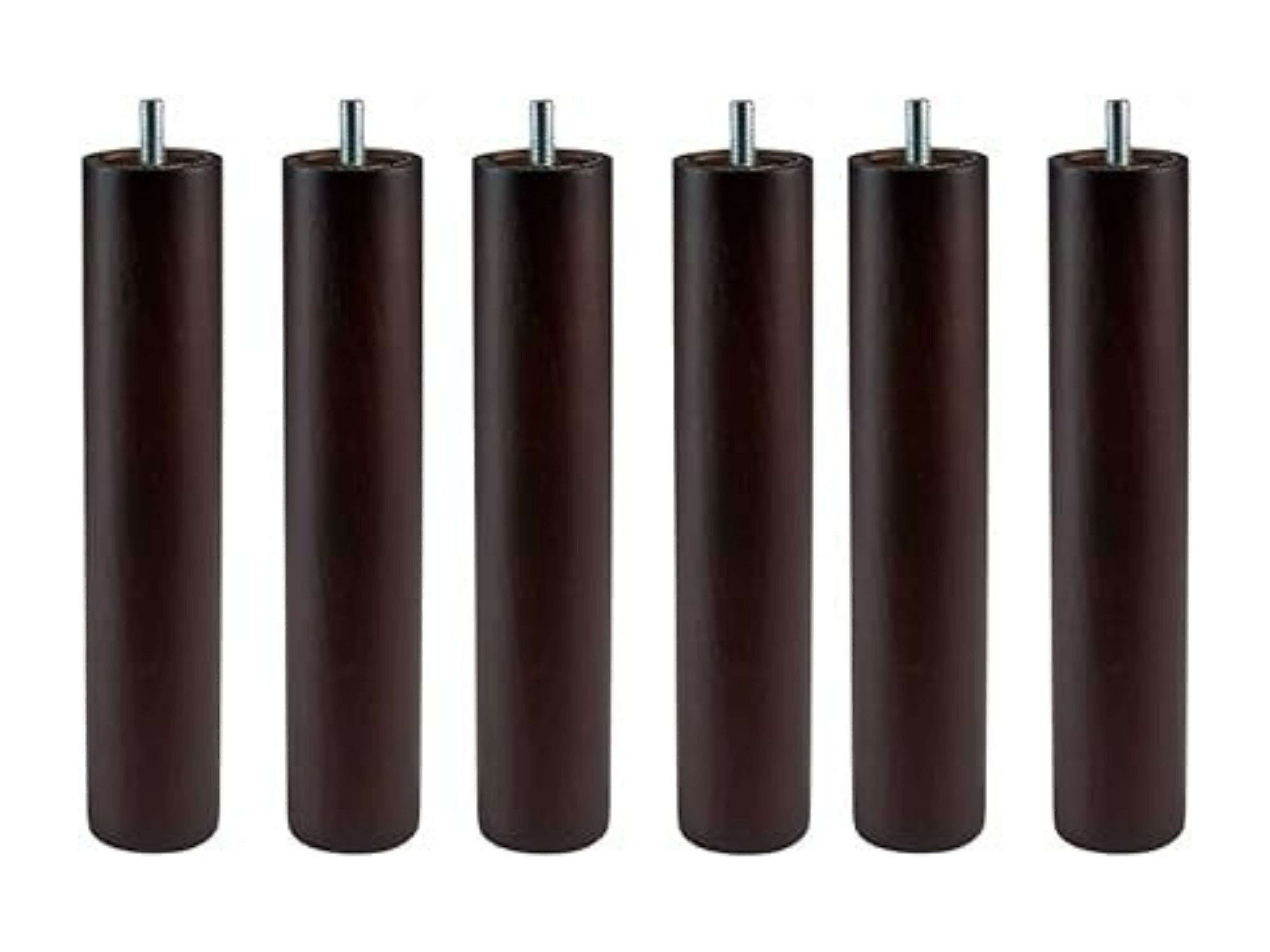 Lot de 6 pieds cylindriques 25 cm pour sommier/sommier tapissier, filetage Wengue