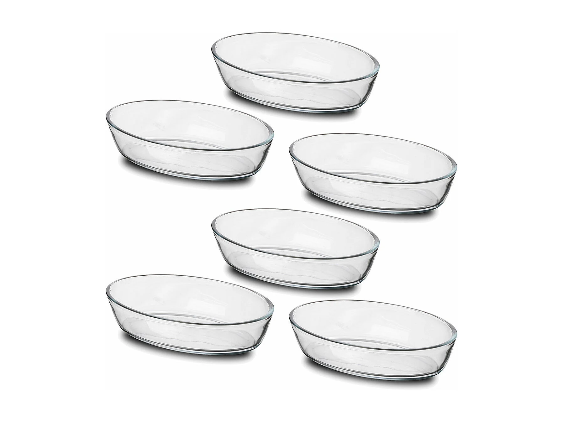 Lot de 6 plat à four oval transparent, moule de cuisson en verre, capacité 700 ml - Longueur 21 x Profondeur 14 x Hauteur 5 cm