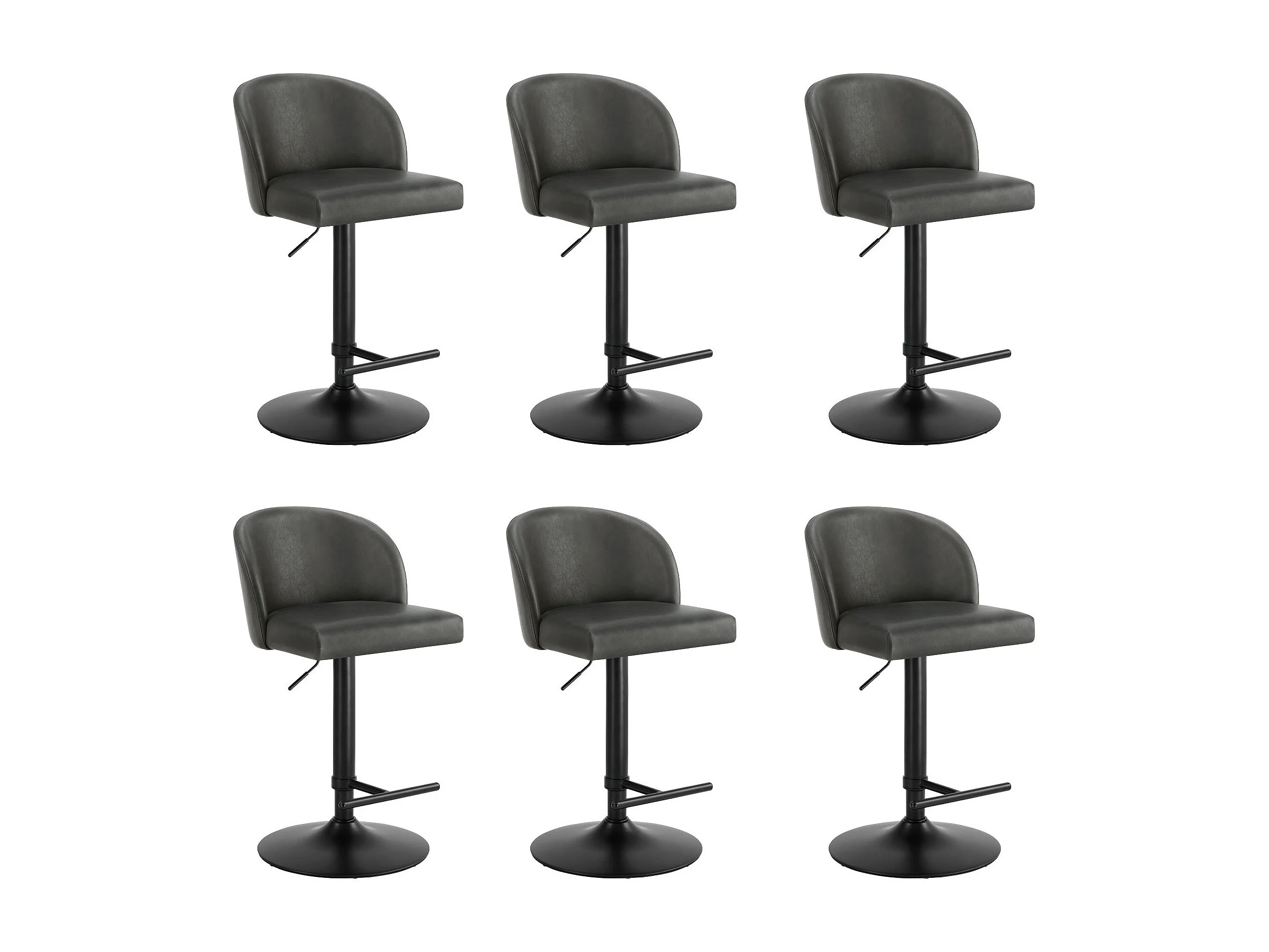 Lot de 6 Tabouret de Bar Chaise de Bar Réglable en Hauteur, Chaises Hautes Revêtement en PU, Rotatif sur 360°avec Dossier et Repose-Pieds Gris foncé