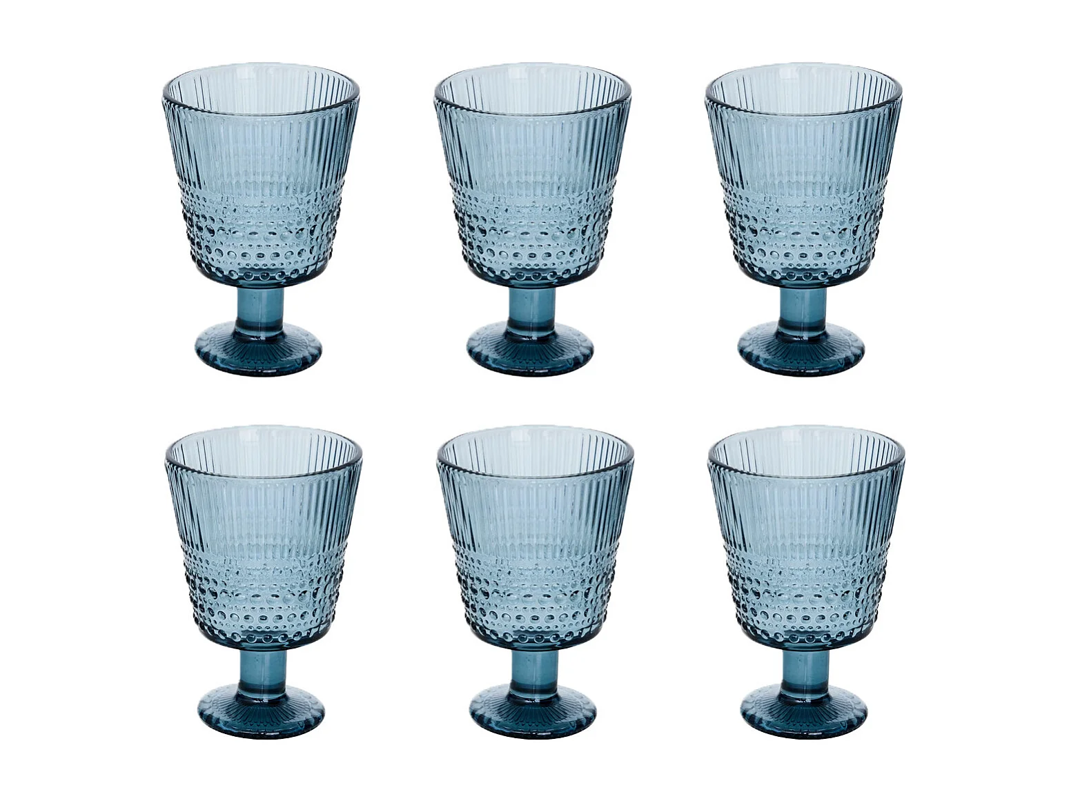 Lot de 6 Verres à Vin Strie "Ema" 25cl Bleu