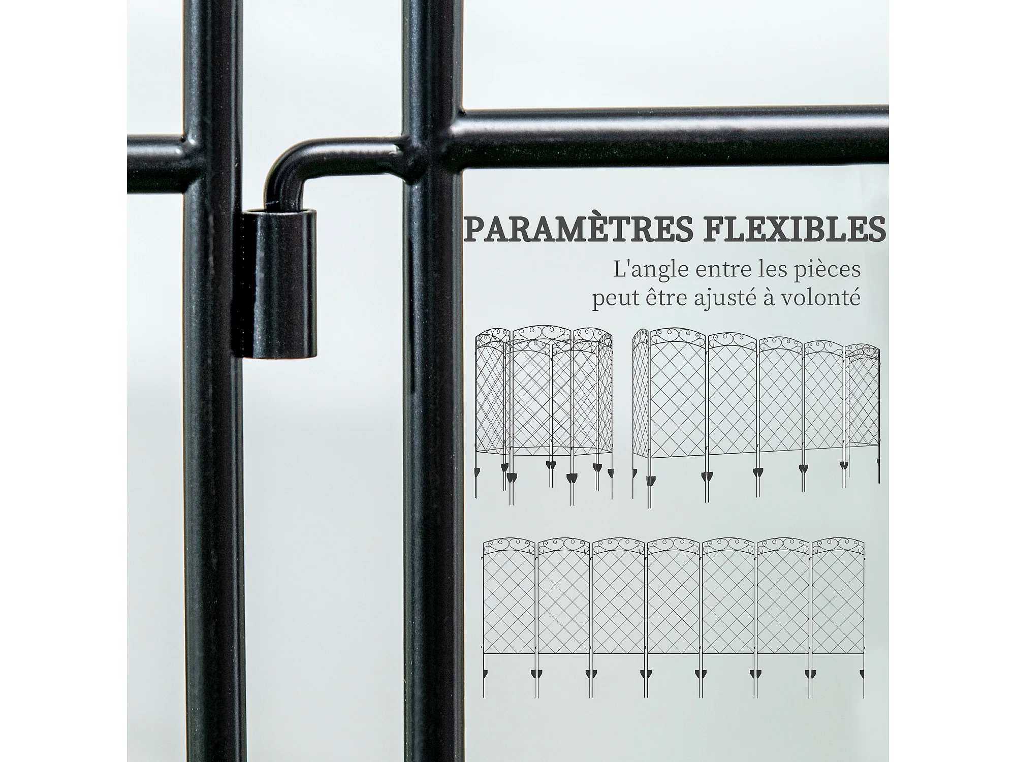 Lot de 7 clôtures de jardin décoratives en métal avec ornements - dim. totales 344L x 110H cm - noir