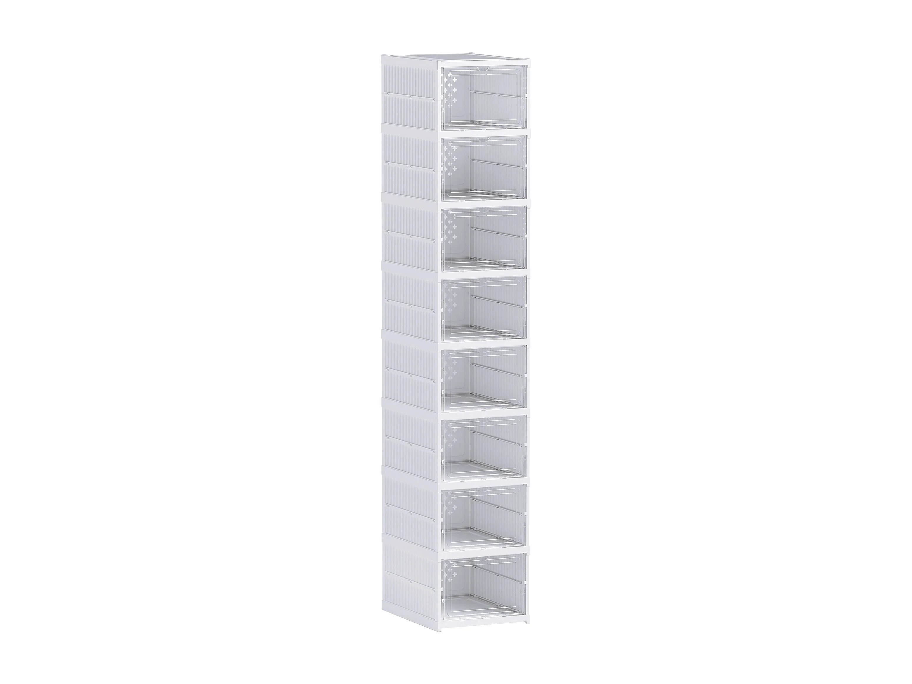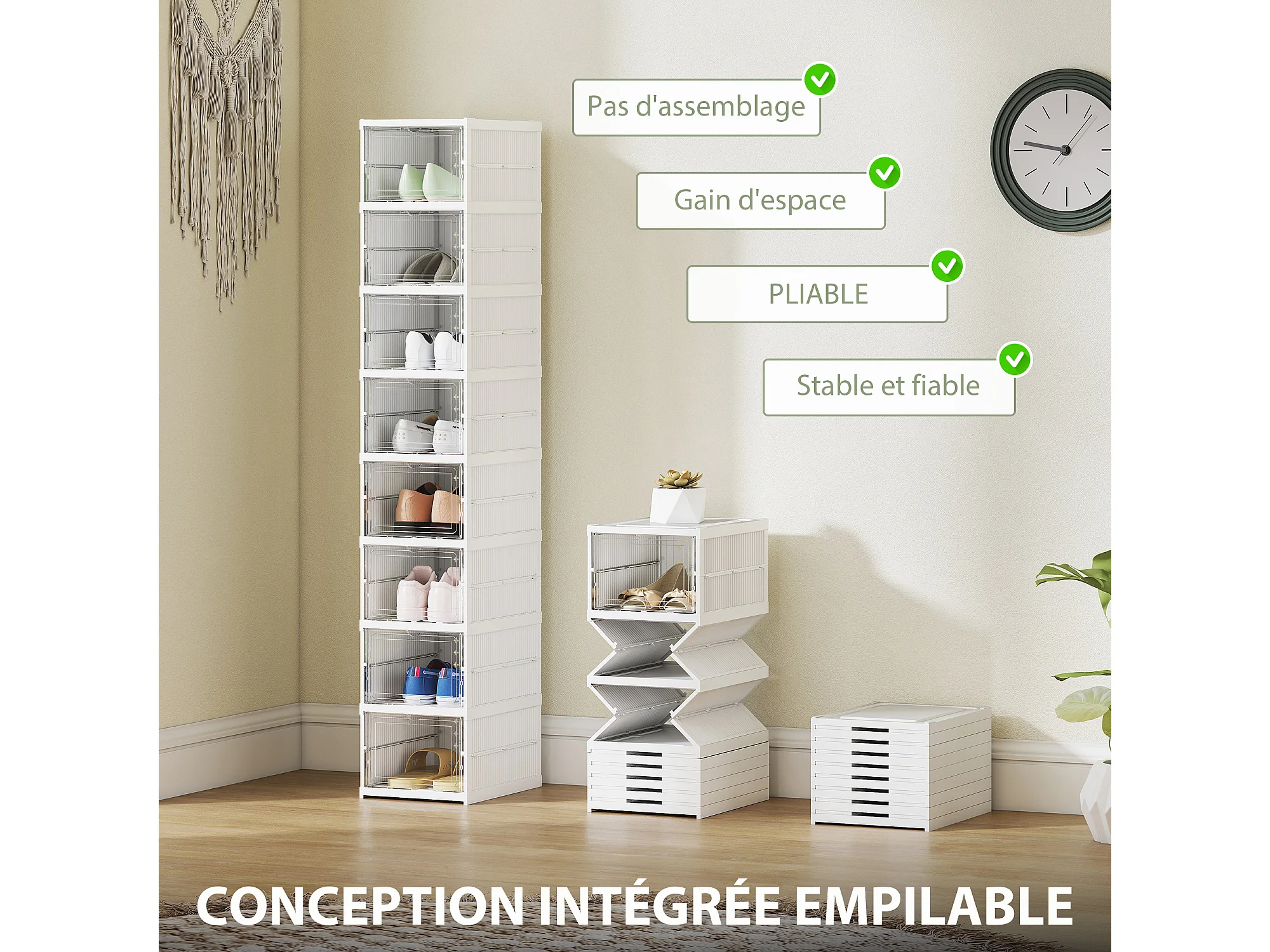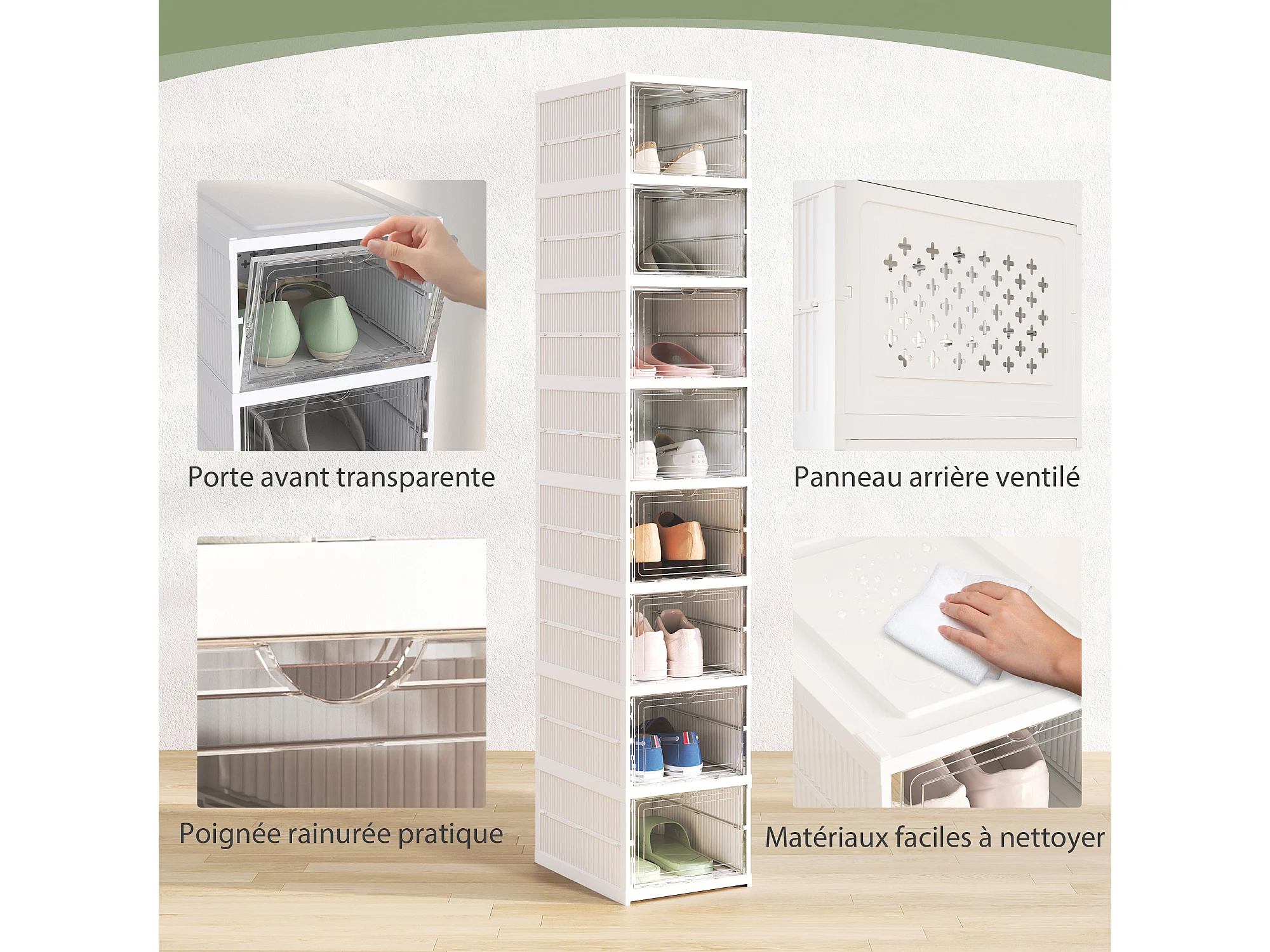 Lot de 8 boîtes à chaussures pliables - cubes à chaussures - dim. 26x35x140 cm - blanc transparent