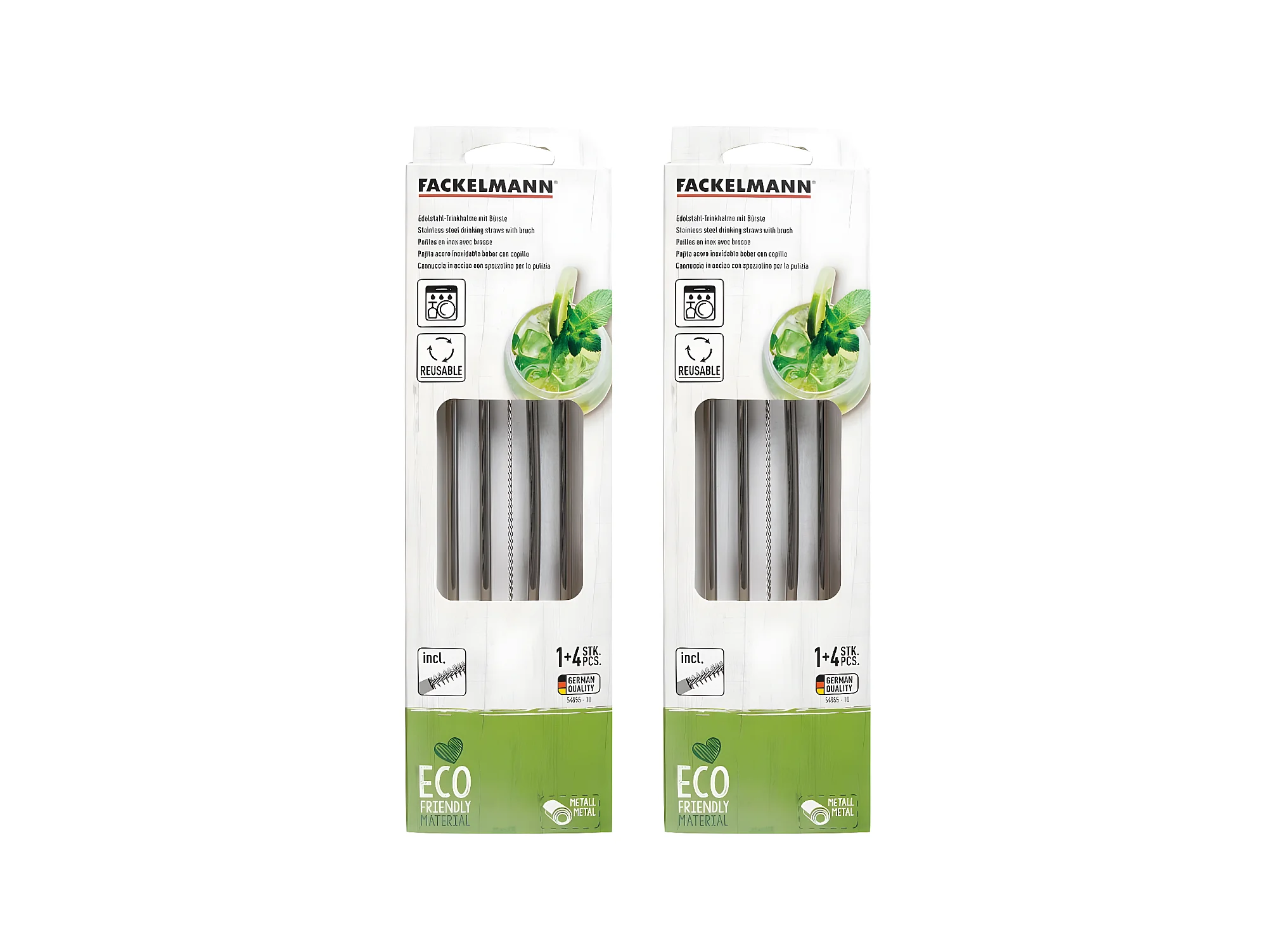 Lot de 8 pailles en inox avec 2 goupillons de nettoyage 24 cm Fackelmann Bar Concept