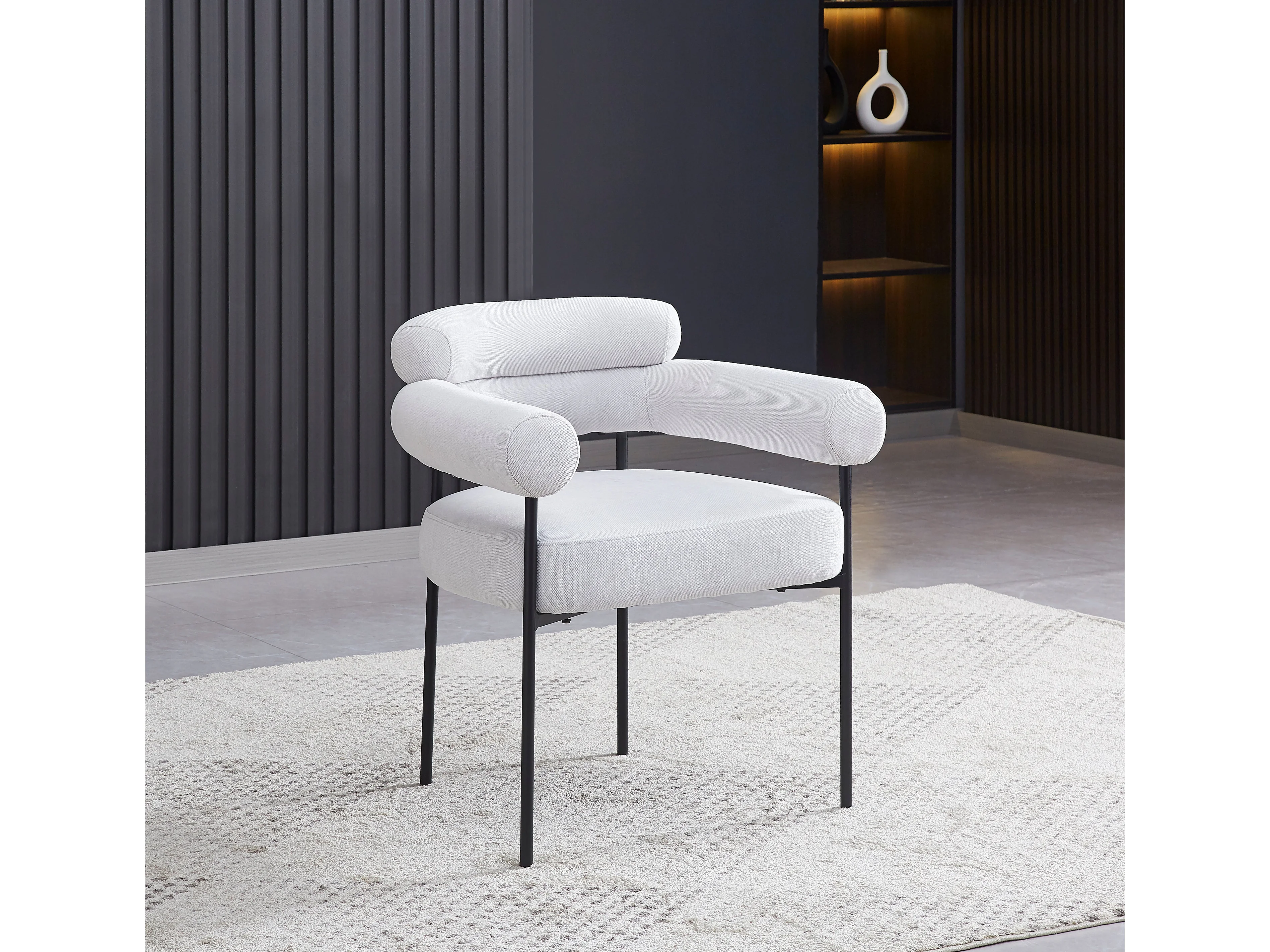 Lot 2 Chaises Salle à Manger Serge Gris Avec Accoudoirs 72x60x77cm Métal Noir