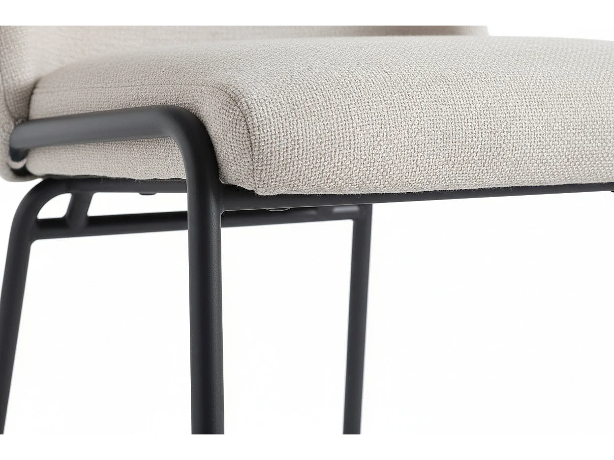 Lot 4 Chaises Salle à Manger Cali Tissu Effet Lin Beige Pieds Métal Noir 47x58,5x86,5cm