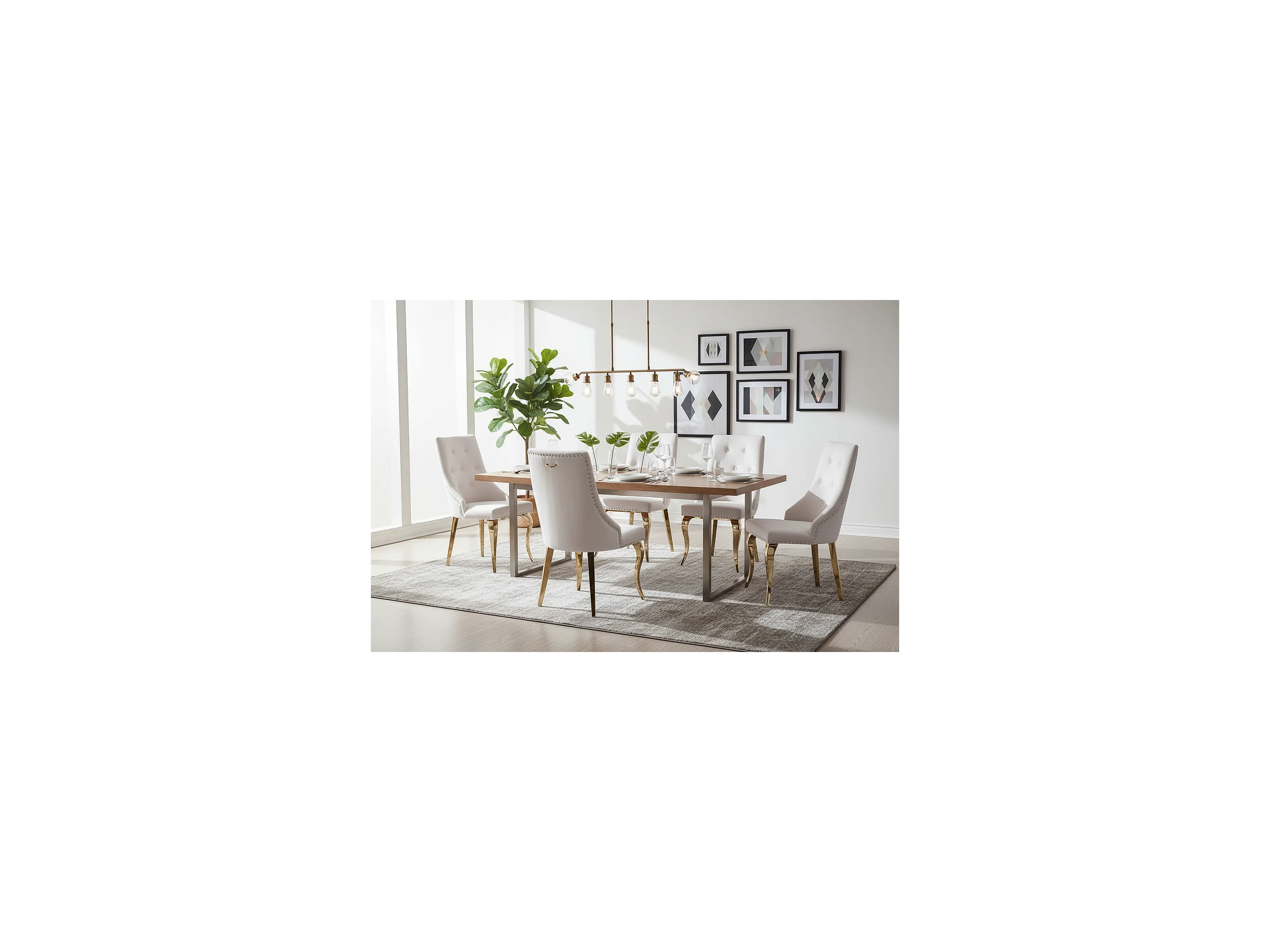 Lot 2 Chaises Salle à Manger Anneau Velours Écru Capitonnées Cloutées Pieds Gold