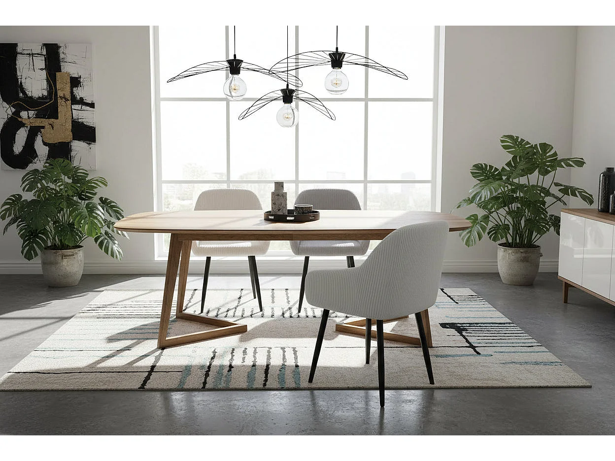 Lot 2 Chaises Salle à Manger Peach Accoudoirs Écru Pieds Métal Noir