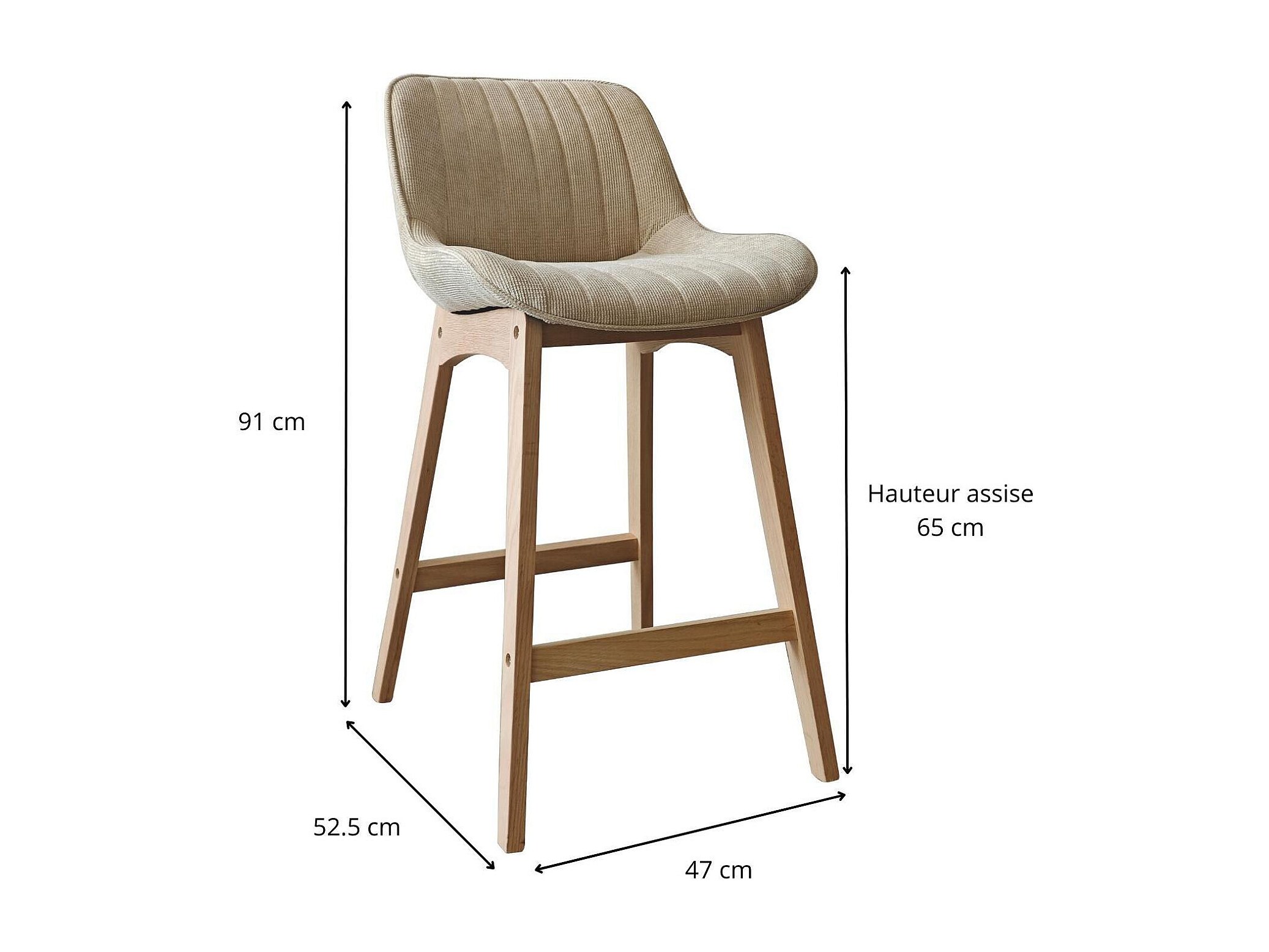 Lot de chaises d'îlot et bar en chêne et assise tissu velours côtelé H65cm