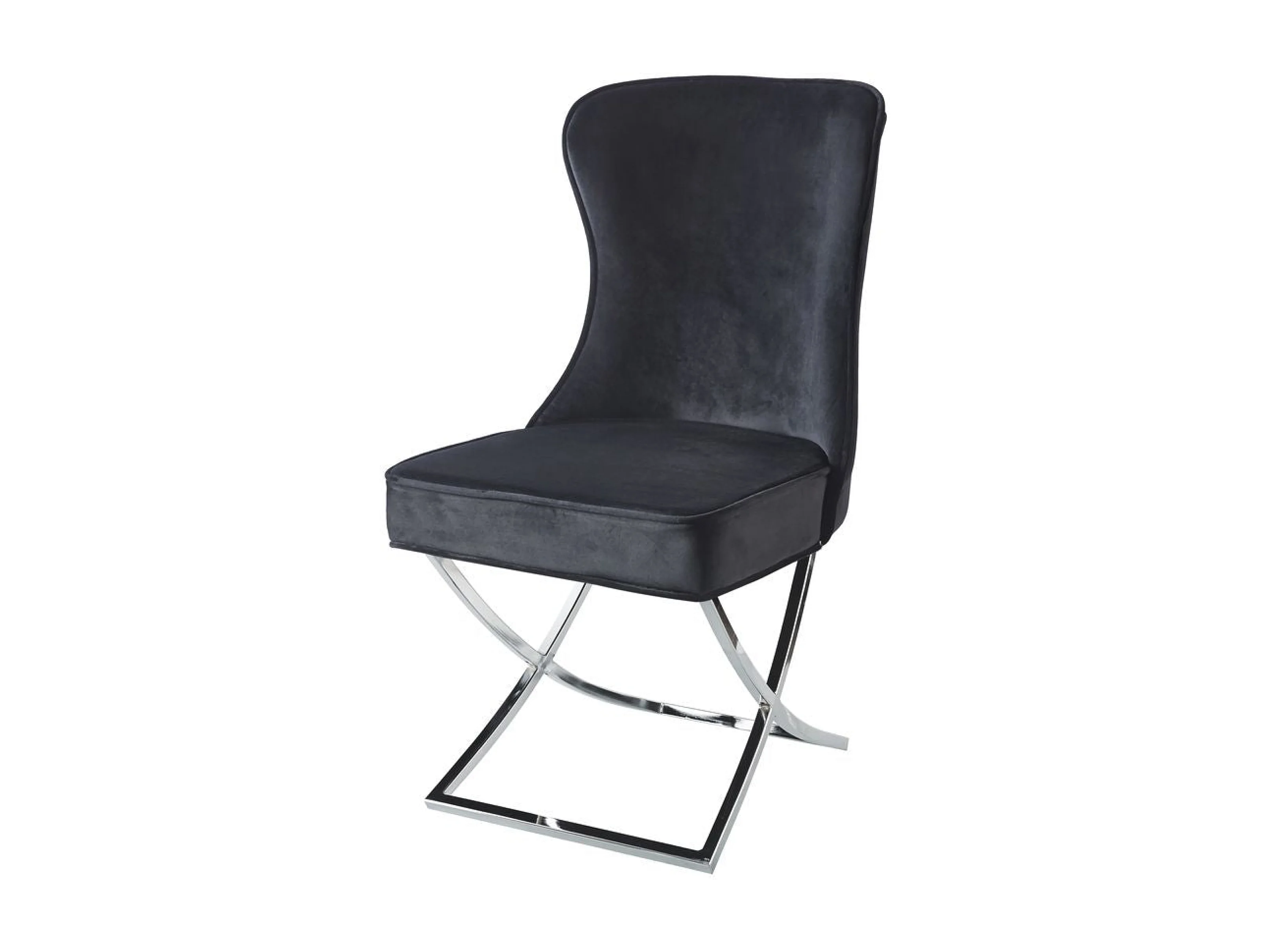 Lot 2 Chaises Salle à Manger Gabrielle Capitonnées Velours Noir Pieds Chrome 59x52x95cm